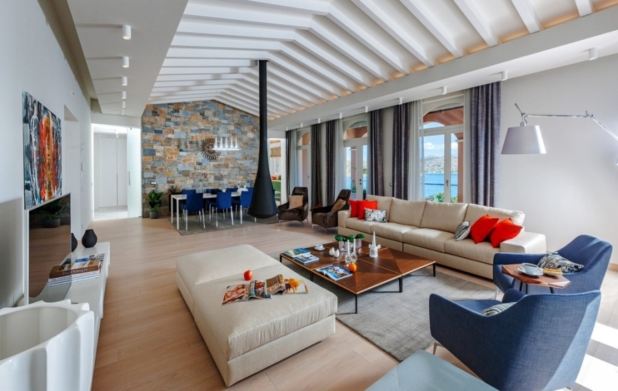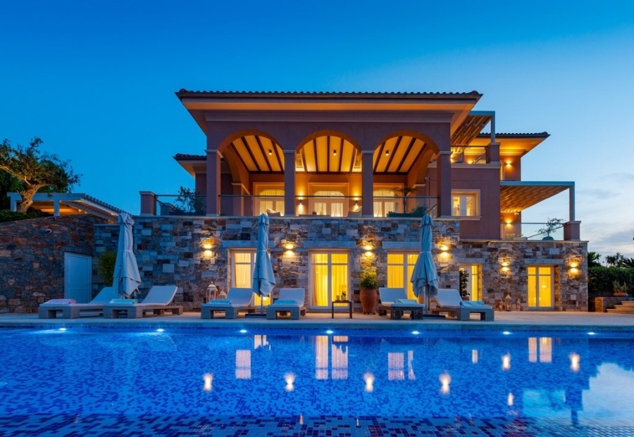 Πολυτελής βίλα έξι υπνοδωματίων με πισίνα 54τ.μ. είναι διαθέσιμη προς πώληση. Αυτή η βίλα 642τ.μ. εντός οικοπέδου 4.014τ.μ. απέχει μόνο 100 μέτρα από την παραλία της Ελούντας, 12χλμ. από τις παροχές του γραφικού Αγίου Νικολάου, Ανατολικής Κρήτης και 73χλμ. από το αεροδρόμιο του Ηρακλείου. Διαθέτει πλακόστρωτο χώρο στάθμευσης 50τ.μ. αναπτύσσεται σε τρία επίπεδα και περιβάλλεται από διαμορφωμένο εξωτερικό χώρο. Το υπόγειο περιλαμβάνει τους χώρους τεχνικού εξοπλισμού και ανοίγει σε μεγάλο χολ το οποίο οδηγεί σε άνετο καθιστικό και σε τρία καλού μεγέθους υπνοδωμάτια. Όλα τα υπνοδωμάτια διαθέτουν γκαρνταρόμπες και εσωτερικά λουτρά. Τα δύο υπνοδωμάτια βλέπουν την πισίνα και το ένα την θάλασσα. Επιπρόσθετα σε αυτό το επίπεδο υπάρχει ένα W.C. και το δωμάτιο πλυντηρίου. Σκάλες από το καθιστικό οδηγούν στο μεσαίο επίπεδο όπου υπάρχουν η κουζίνα, ένα W.C., ένα χολ και ένα υπνοδωμάτιο με γκαρνταρόμπα και εσωτερικό λουτρό. Επίσης ένα τεράστιο σαλόνι με τραπεζαρία ανοίγει σε βεράντα με καταπληκτική θέα στην θάλασσα και το Ενετικό φρούριο της Σπιναλόγκα. Στο ίδιο επίπεδο υπάρχει ακόμα μια κρεβατοκάμαρα με ένα λουτρό και γκαρνταρόμπα, ένα καθιστικό και μια κουζινούλα. Τέλος στον πρώτο όροφο υπάρχει η κυρίως κρεβατοκάμαρα με εσωτερικό λουτρό και γκαρνταρόμπα η όποια ανοίγει σε μπαλκόνι. Εξωτερικά υπάρχει κατασκευή περίφραξης του οικοπέδου και πλακόστρωτη είσοδος προς την οικία. Η βίλα αποτελεί μια μοναδική κατασκευή ανώτερης ποιότητας σε μια ειδυλλιακή τοποθεσία.