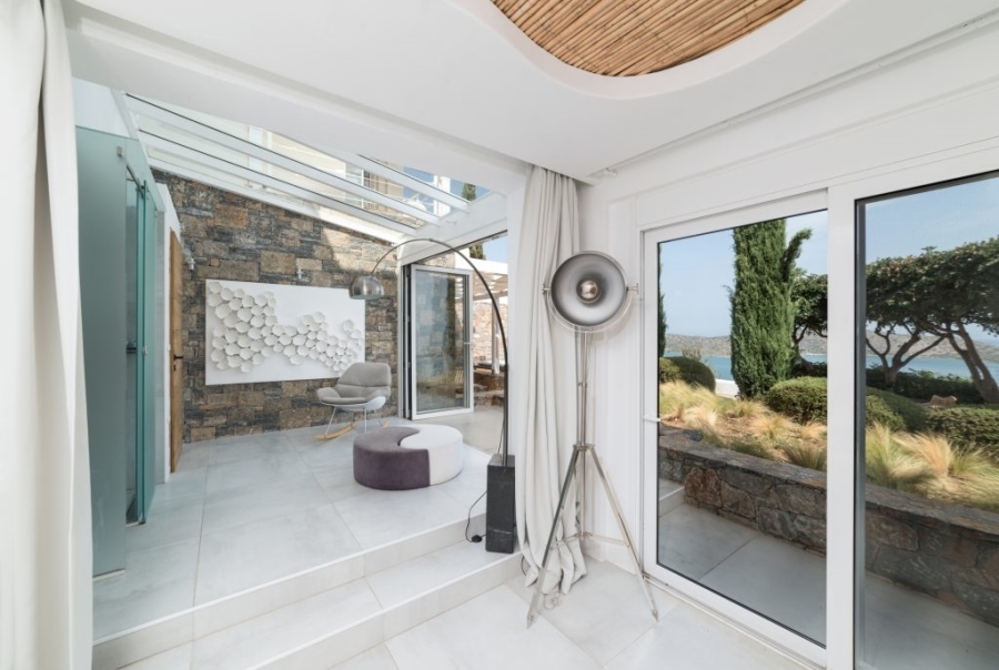 Σε μια υπέροχη τοποθεσία είναι διαθέσιμη προς πώληση πολυτελής βίλα 212τ.μ εντός οικοπέδου 2.200τ.μ με πέντε υπνοδωμάτια. Απέχει μόλις 400 μέτρα από θάλασσα, 1,5χλμ από την κοσμοπολίτικη Ελούντα και 10χλμ από την γραφική πόλη του Αγίου Νικολάου, Ανατολικής Κρήτης. Το ισόγειο ανοίγει σε ένα σαλόνι ιδανικό για χαλάρωση με μια κουζίνα που οδηγεί στην βεράντα και σε έναν μαγευτικό εξωτερικό χώρο. Επίσης απαρτίζεται από δύο υπνοδωμάτια εκ των οποίων το ένα έχει εσωτερικό λουτρό. Στο ίδιο επίπεδο υπάρχει ακόμα ένα μικρό καλαίσθητο σαλόνι, μια μικρή κουζίνα, ο χώρος πλυντηρίου κι ένα W.C. Όλοι οι χώροι σε όλη τη βίλα προσφέρουν μαγευτική θέα κόλπο της Ελούντας. Σκάλες οδηγούν στον πρώτο όροφο της βίλας που περιλαμβάνει δύο υπνοδωμάτια με ιδιωτικά λουτρά κι ένα υπνοδωμάτιο με δικό του καθιστικό και λουτρό. Κάτω από τις σκάλες υπάρχουν δύο κουκέτες και δίπλα τους ένα W.C. Η βίλα είναι κλιματιζόμενη, με κεντρική θέρμανση, κουφώματα αλουμινίου , συναγερμό , χρηματοκιβώτιο και αποθηκευτικούς χώρους. Εξωτερικά υπάρχουν σκιερές πέργκολες με τραπεζαρία και σαλόνι ιδανικά για χαλάρωση προσφέροντας ανεμπόδιστη θέα. Κήποι και βεράντες με την πισίνα κι ένα εξωτερικό υδρομασάζ διαμορφώνουν έναν ονειρικό χώρο. Ακόμα περιλαμβάνει χώρο στάθμευσης και μπάρμπεκιου. Πρόκειται για μια βίλα σχεδιασμένη με προδιαγραφές πολυτελούς κατοικίας διαθέτοντας όλες τις σύγχρονες ανέσεις και παροχές που αναμφισβήτητα θα έκανε τον καθένα υπερήφανο για την επιλογή του.