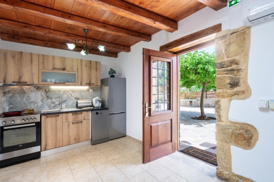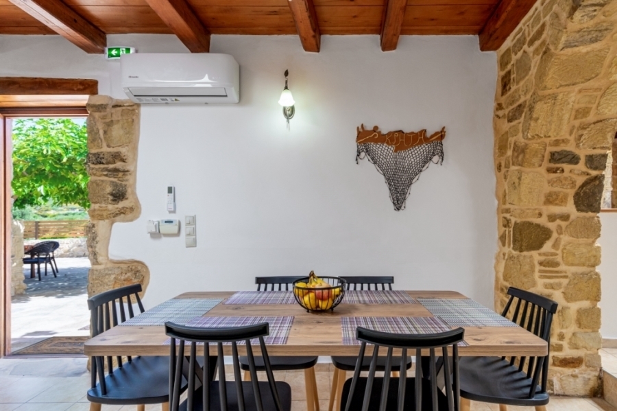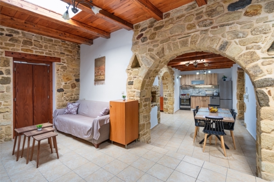 Πετρόκτιστη βίλα 115 τ.μ. είναι διαθέσιμη προς πώληση εντός παραδοσιακού οικισμού κοντά στη Σητεία. Βρίσκεται σε οικόπεδο 500 τ.μ. , σε απόσταση 22 χλμ. από την πόλη και τον αερολιμένα Σητείας και 12 χλμ. από τη θάλασσα .Επιπλέον υπάρχει διπλανό οικόπεδο 600 τ.μ. το οποίο περιλαμβάνει 4 ελαιόδεντρα και χρησιμοποιείται ως χώρος στάθμευσης . Πρόκειται για μια αξιόλογη κατοικία, η οποία κατασκευάστηκε το 2008 και ανακαινίστηκε το 2023. Το εσωτερικό της ξεχωρίζει για την παραδοσιακή αρχιτεκτονική του, με πέτρινες καμάρες , εμφανή λιθοδομή και ξύλινα ταβάνια, που δημιουργούν έναν ζεστό και αυθεντικό χαρακτήρα .Μπαίνοντας στην οικία συναντάμε ενιαίο χώρο κουζίνας και τραπεζαρίας. Απέναντι από την κεντρική είσοδο , η καμάρα οδηγεί σε υπνοδωμάτιο με ιδιωτικό λουτρό. Στα αριστερά της κύριας εισόδου αναπτύσσεται σε ενιαίο χώρο το σαλόνι με τζάκι , υπνοδωμάτιο και ένα λουτρό. Ο περιβάλλων χώρος είναι εξαιρετικά διαμορφωμένος με διάφορα δέντρα προσφέροντας θέα στην εξοχή και τα βουνά . Αναμφισβήτητα πρόκειται για ένα ακίνητο που συνδυάζει την φυσική ομορφιά και την ηρεμία , ιδανικό ως μόνιμη ή εξοχική κατοικία.