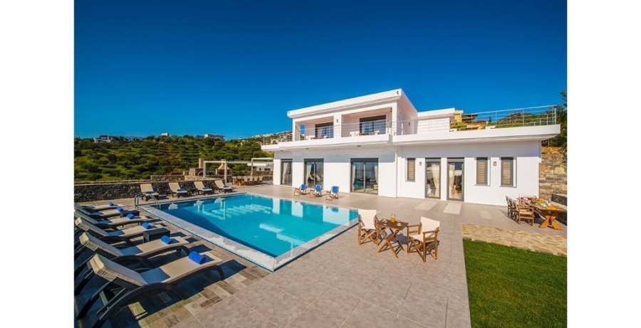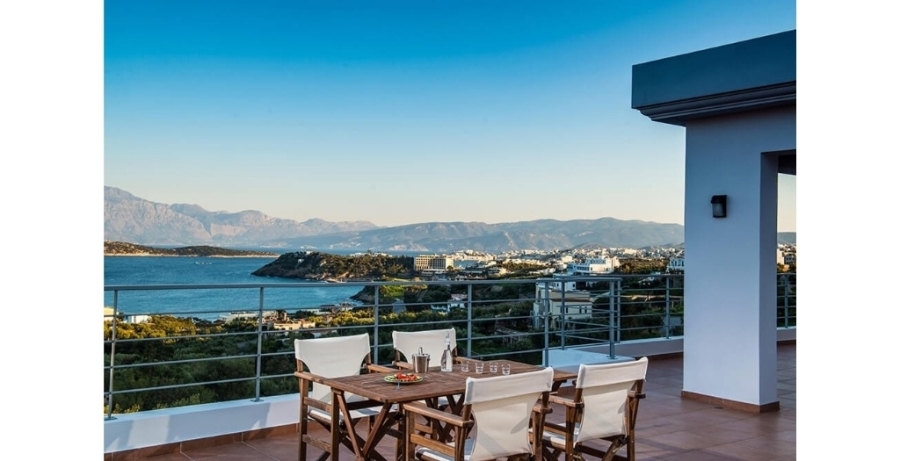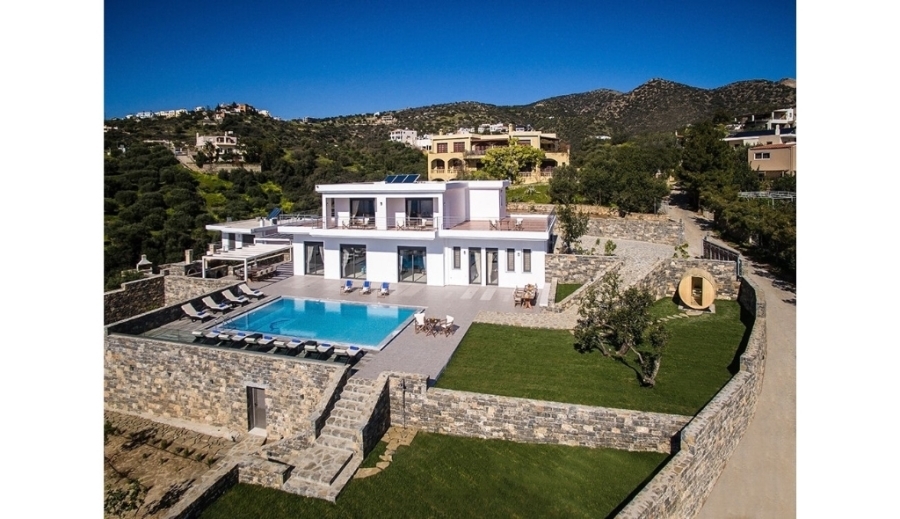 Πολυτελής βίλα 307τμ είναι διαθέσιμη προς ενοικίαση σε μια μοναδική τοποθεσία σε απόσταση 500μέτρων από τη θάλασσα και 3χλμ από το κέντρο του Αγίου Νικολάου. Η βίλα είναι χτισμένη σε ένα ύψωμα προσφέροντας μαγευτική πανοραμική θέα στον κόλπο του Μεραμπέλου και αναπτύσσεται σε δύο επίπεδα. Στο ισόγειο συναντάμε έναν μεγάλο ενιαίο χώρο που φιλοξενεί το σαλόνι . Στον χώρο αυτό υπάρχει τζάκι και μεγάλα ανοίγματα που οδηγούν στο εξωτερικό περιβάλλον. Υπάρχει μια πλήρως εξοπλισμένη κουζίνα και τρία υπνοδωμάτια. Το ένα από αυτά διαθέτει ιδιωτικό μπάνιο, ενώ υπάρχει ακόμα ένα λουτρό που εξυπηρετεί τα υπόλοιπα υπνοδωμάτια. Ανεβαίνοντας στο ανώτερο επίπεδο, είτε με ασανσέρ είτε με εσωτερική σκάλα συναντάμε τα δύο ευρύχωρα υπνοδωμάτια καθένα από τα οποία διαθέτει ιδιωτικό μπάνιο με τζακούζι και δωμάτιο γκαρνταρόμπα. Τα υπνοδωμάτια έχουν άμεση πρόσβαση σε μεγάλη επιπλωμένη βεράντα 140τμ με υπέροχη θέα στο λιμάνι του Αγίου Νικολάου. Όλοι οι χώροι της βίλας είναι κομψά διακοσμημένοι και διαθέτουν κλιματισμό. Στον εξωτερικό χώρο των 1.500τμ υπάρχει πισίνα 68τμ, κήπος 270τμ με γκαζόν, BBQ με τραπεζαρία και εξωτερική σάουνα. Μοναδικής κατασκευής βίλα σε μια ιδανική τοποθεσία για στιγμές χαλάρωσης κοντά στις ανέσεις της πόλης.