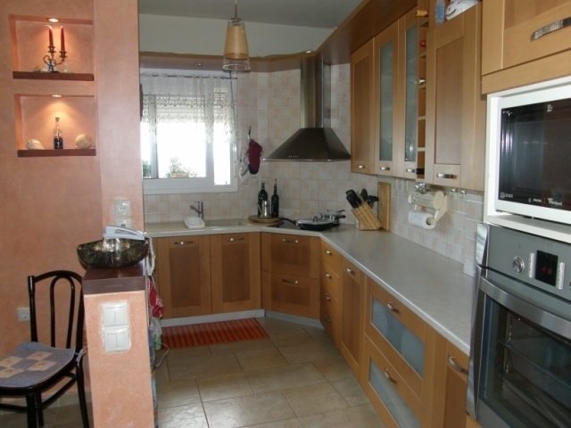 A large 3 bedroom house with three separate apartments is for sale only 400m from the sea in Aghios Nikolaos, a picturesque major holiday resort and the commercial capitol of Eastern Crete. This centrally heated, three storey, 300m2 house is built on a 320m2 plot with parking at the front, a lawned garden at the rear and the balconies at the front and back afford wonderful views over the town and out across Mirabello Bay to the blue Aegean. The main accommodation comprises of an open plan lounge with feature fireplace, dining area, fully fitted modern kitchen and a guest toilet on the first floor. On the top floor are three good sized bedrooms a dressing room and two bathrooms. The ground floor comprises two apartments each with its own bathroom and the basement houses a one bedroom, one bathroom apartment with open plan lounge and kitchen. In addition, there is storage space and a boiler room in the basement. This house offers a wonderful opportunity to own a large family home with privacy from guests in a convenient location within walking distance of most amenities