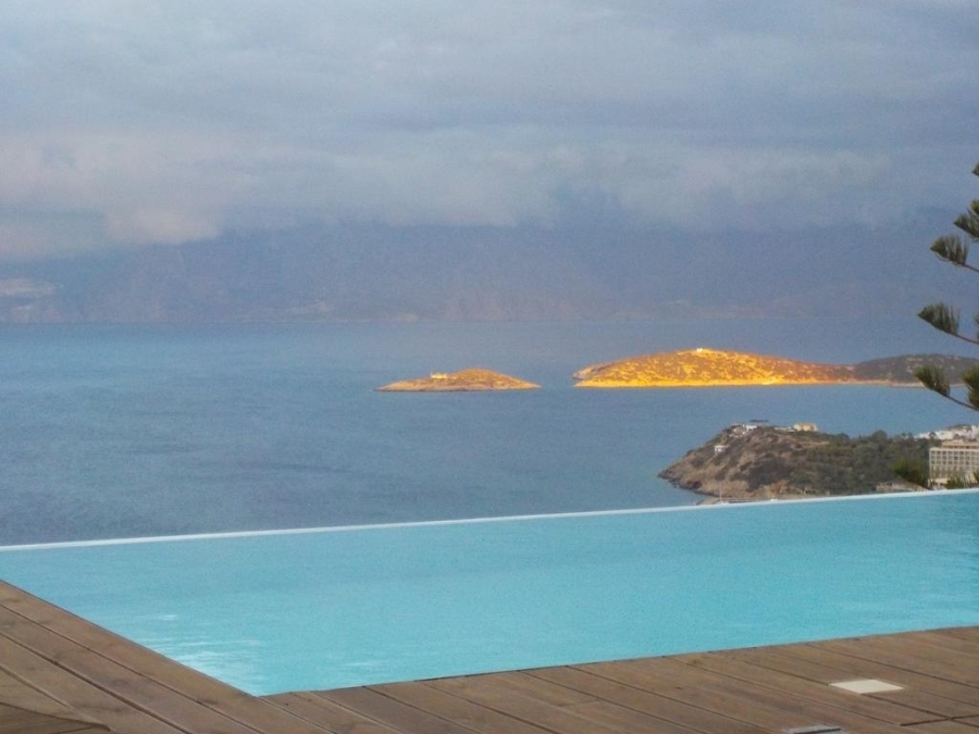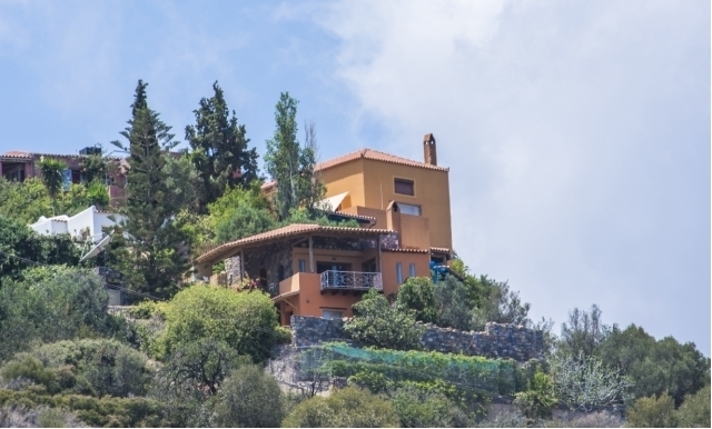 Within plot of 697m2 there are 2 houses available for sale. The main house is 380m2 which developed in 3 levels. It has 4 master bedrooms, one small bedroom, 3 bathrooms (of which one is en-suite), laundry and cloakroom. In addition there is one living room in the ground floor and one living on the third level which has a large fireplace, two kitchens and a loft of 30m2. Each level has its own separate entrance. It also has an independent system of high quality heating and boiler of 300 liters. There are air conditioners though usually not used as the house is perfectly insulated. Outwards features a large infinity swimming pool with Jacuzzi and a courtyard with a warehouse in the back property. In the same plot, there is a guest house of 53m2. This guest house consists of a bedroom, bathroom, kitchen and a living room with fireplace (including A/C) and independently controlled central heating associated with the main house. The residences oriented east have large balconies with beautiful pergolas where you can enjoy the spectacular views of the seven islands in the Aegean and the impressive mountains of Sitia on your right. The gardens are lush with grass and have various fruit trees, cypress and blooming fragrant flowers. The houses are made with the best materials in the market, such as authentic iroco, mahogany and Antica Umbria Italian tiles. The distance from the nearest beach is just 770 meters and 3,5km from the town of Agios Nikolaos, East Crete. Undoubtedly it is a worthwhile investment choice.