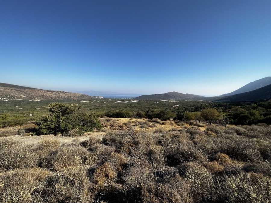 A building land of 3.000m2 is available for sale in the settlement Monastiraki, close to Ierapetra. It is located 12 km from Ierapetra, 5 km from the beach and 48 km from the International Airport of Sitia. It is flat with slight slopes and it has electricity and water supplies nearby. It offers panoramic view at the sea and the mountains, while it allows the construction of two houses of 120m2 each, plus basements, terraces, swimming pool, etc. It is a very good investment choice for the construction of your home in a quiet area and at the same time close to the amenities of the city.