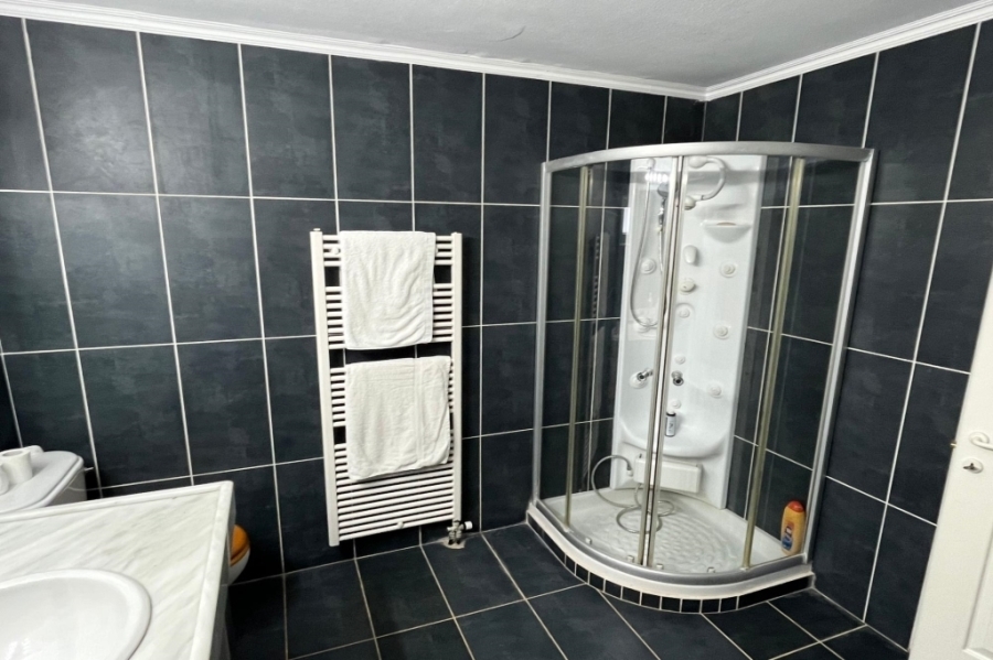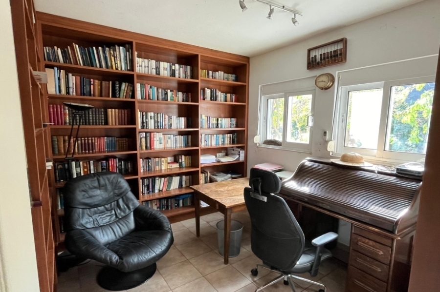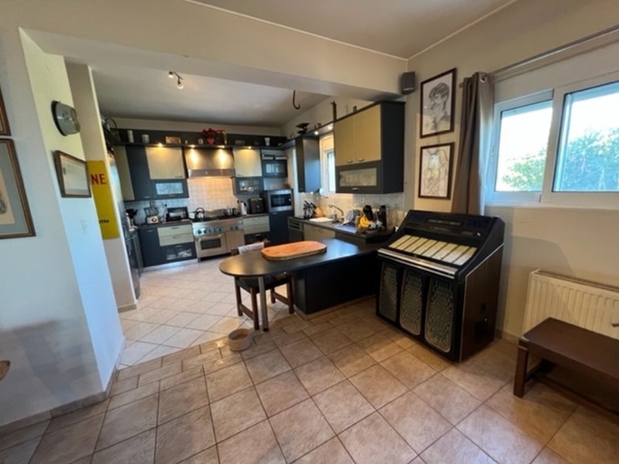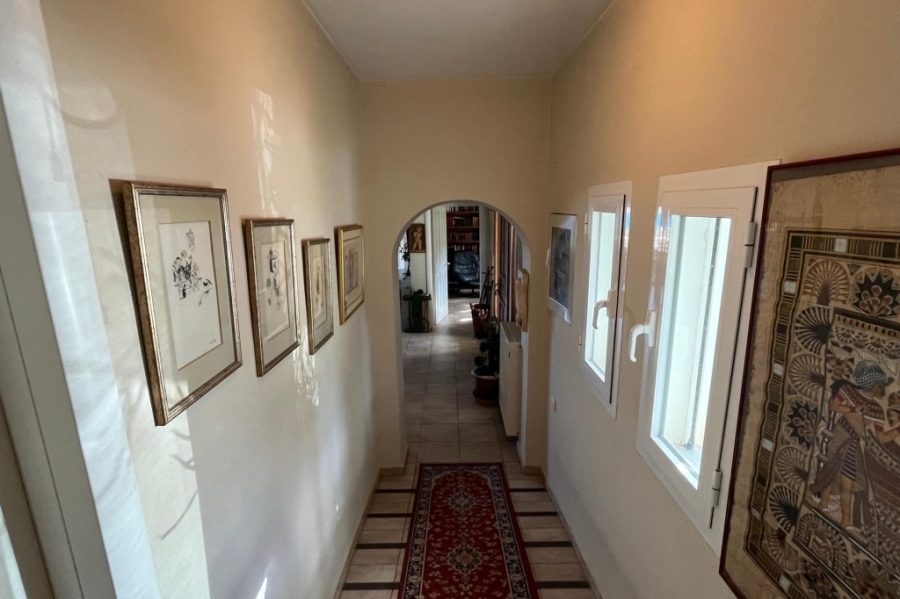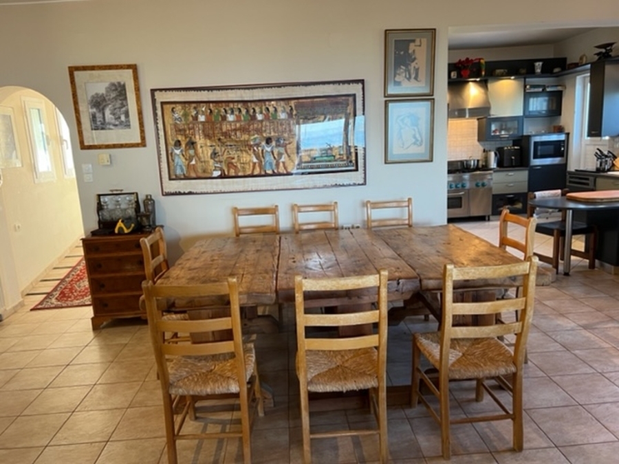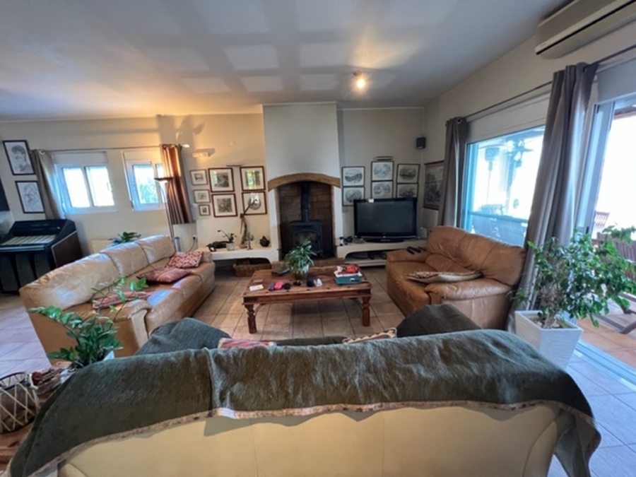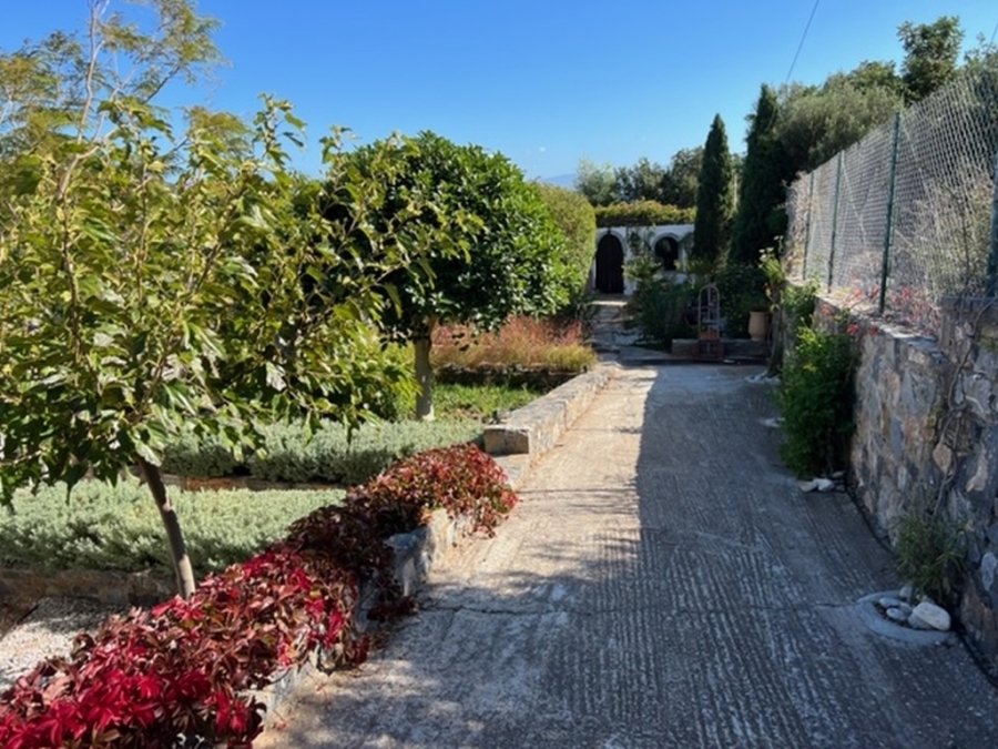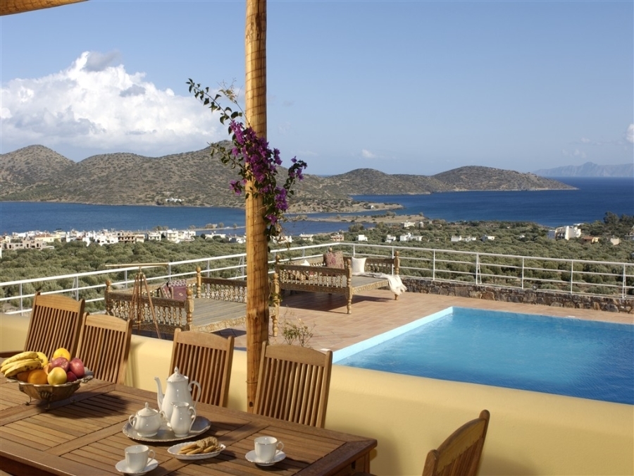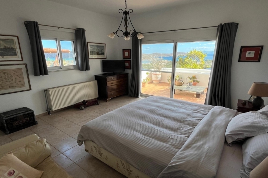 Located in Elounda, Eastern Crete this truly outstanding house with panoramic views of Mirabello Bay and Spinalonga is for sale. This idyllic situation is just 800m from the shops and restaurants of the fishing village of Elounda and only 8 km from the town of Aghios Nikolaos. In an elevated position, this 280 m2 property on a 4.500 m2 plot has unimpeded sweeping views. From the 60 m2 lounge with feature fireplace, sliding glass doors lead to the summer dining terrace and the 15 x 5 metres heated swimming pool with large terrace and shower. This dream of a designer kitchen is stylishly equipped with double gas hob, extractor hood and every modern convenience, a large adjoining larder and door to the terrace. The master suite has a bedroom with doors to a private terrace, full bathroom with bath and separate multijet shower, walk in dressing room with wardrobes and a large fitted study or extra bedroom with guest toilet. In another part of the house are two en-suite guest bedrooms with terraces. The 80 m2 basement area contains a sauna, shower-room, fitted store-room and a laundry room with washing machine, tumble drier,shelving for bedding, a freezer and ice maker. The pool filtering system, heating boiler and oil store are in a separate basement. The house has air conditioning and oil fired central heating throughout, two telephone lines (connections in all rooms), broadband, satellite T.V., automatic outside lighting, electric blinds, electric entrance gate, car port and multiple parking. Overlooking its own olive grove, the beautiful, automatically watered, landscaped gardens with citrus and fruit trees and a water feature, completes this idyllic setting and makes this a home to cherish and enjoy.