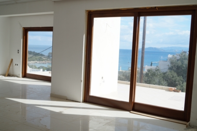 A semi-finished house of 250m2 is available for sale in Aghios Nikolaos, Eastern Crete. It is located only 500 meters far from a sandy beach, 4 km from the town of Aghios Nikolaos and 69km from the international airport of Heraklion. The main house is developed in two floors and lies in a plot of 500m2 offering great views to the sea and the countryside. It includes an open area living-dining room and kitchen, five bedrooms , two bathrooms and one W.C. The basement is divided in two apartments of 75m2 each one which the owner can used as guest rooms. Also in the property have installed the windows frames, the tiles, as well as the plumbing and electrical . When it will completed will be a lovely residence or holiday villa close to all amenities.