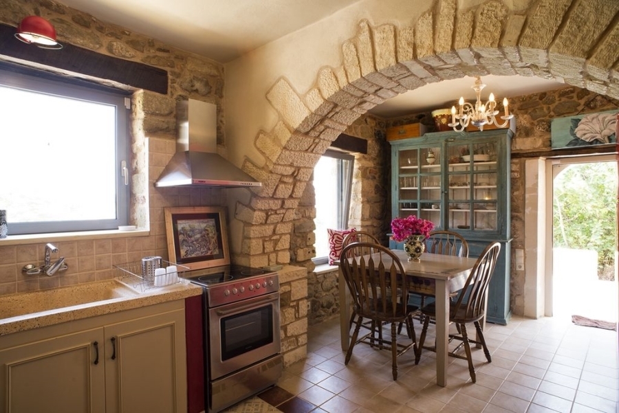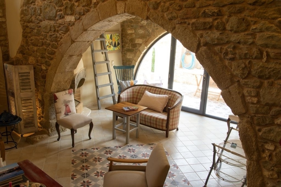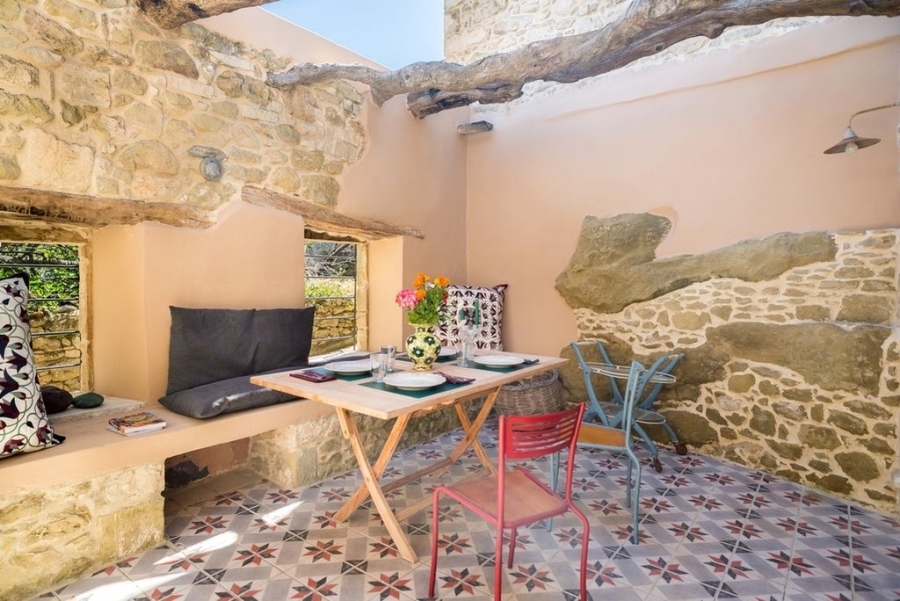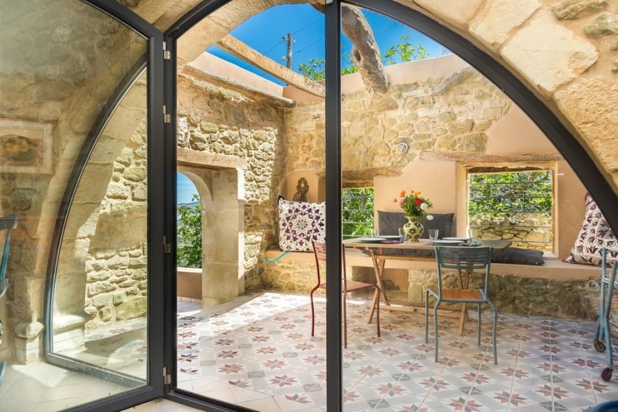Renovated 80m2 stone house is available for sale in a village near Sitia. It is located on a plot of 2.000m2 and within a distance of 20km from the town of Sitia, the sea and the airport. The house consists of an open plan kitchen and a living room with a fireplace separated by beautiful arches, 2 bedrooms one with an en-suite bathroom and another bathroom. From the living area we drive through the impressive glass window to the patio area that is shaped like a courtyard. It consists of an ideal choice for your permanent or holiday home.