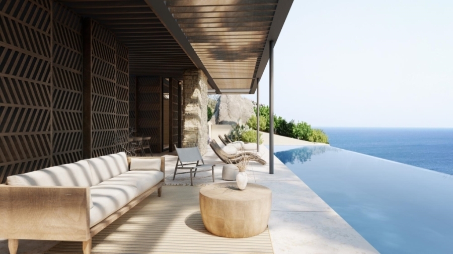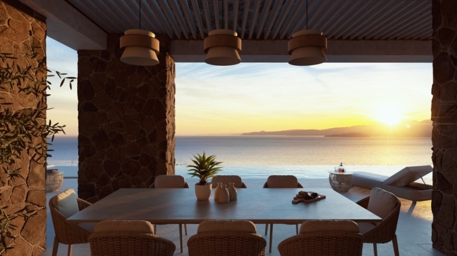 Beautiful luxury 3 or 4 bedroom villas are available for sale in East Crete. They are only 4km from the picturesque town of Agios Nikolaos and 67km from the International Airport of Heraklion . Each one is characterized by modern lines offering comfort and luxury to the owner. They range from 270m2 to 330m2 and each one is located on a plot of 1520m2. All are airy and sunny and have comfortable bedrooms, separate living rooms, wardrobes, large bathrooms, W.C as well as private pools. They are developed in a luxury complex that has branded residences, a residential community, a marina, a beach club, a free beach club, a free thalassotherapy area and a free private pool. Their elegant interior design harmonizes wonderfully with the enchanting landscape, constituting a particularly valuable and profitable investment. The prices with the furnitures are vary. Opening in the summer of 2026