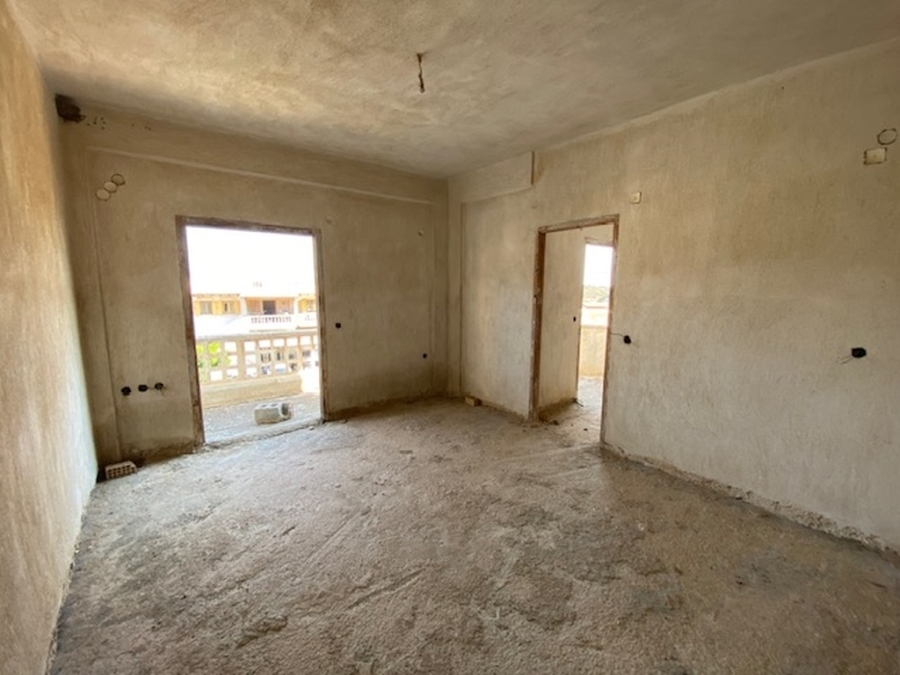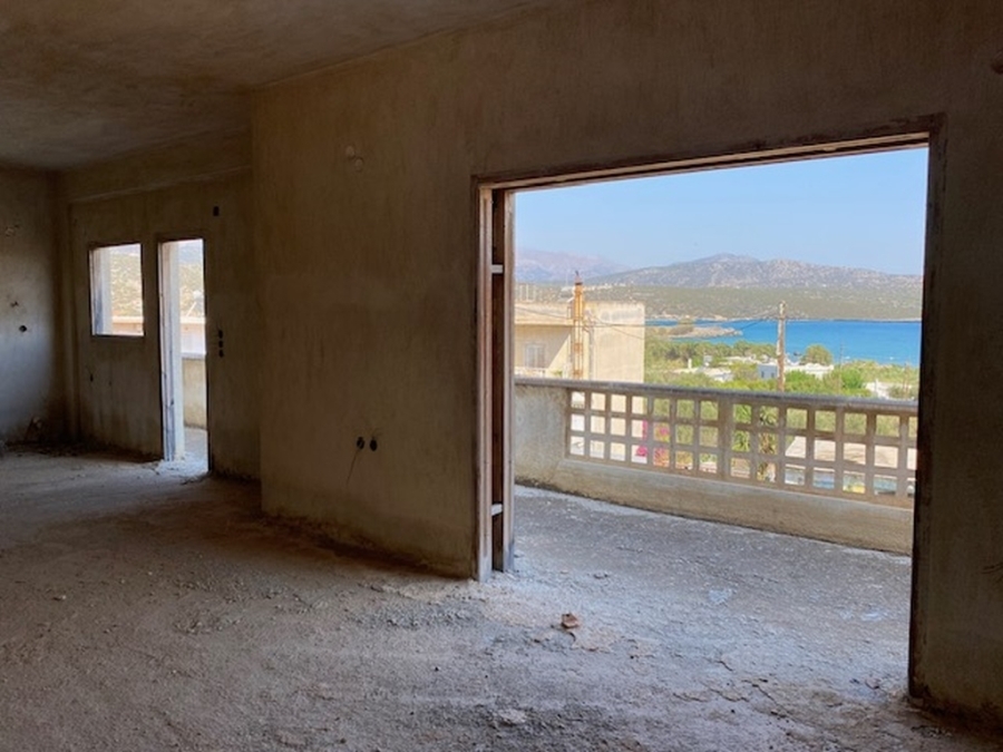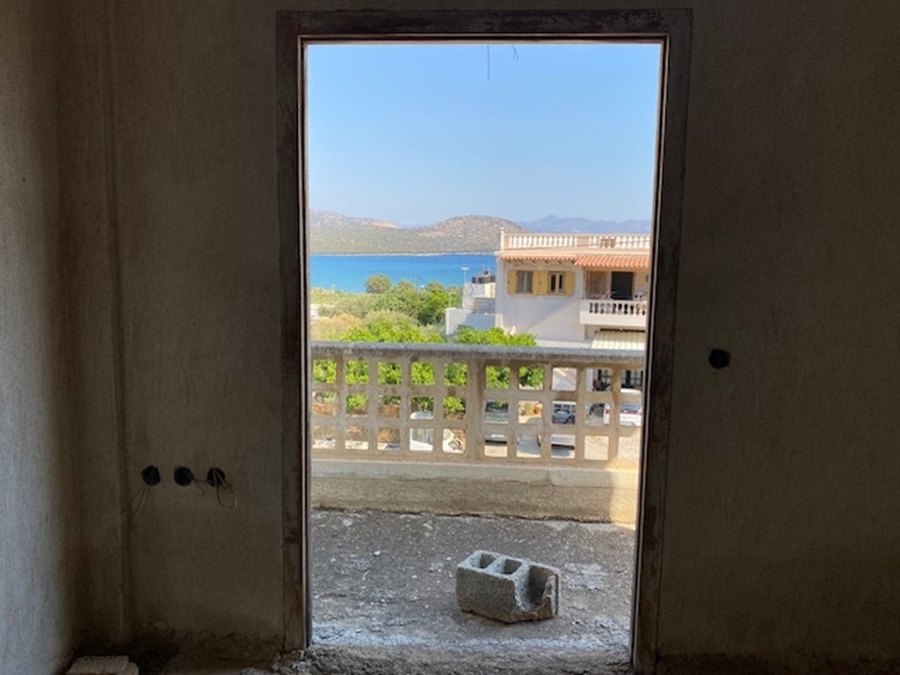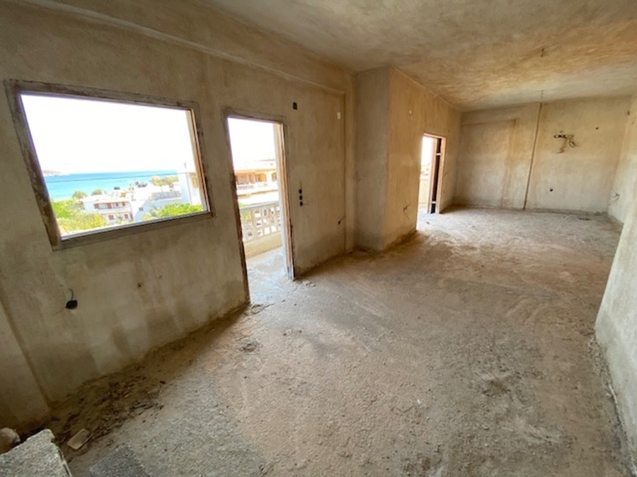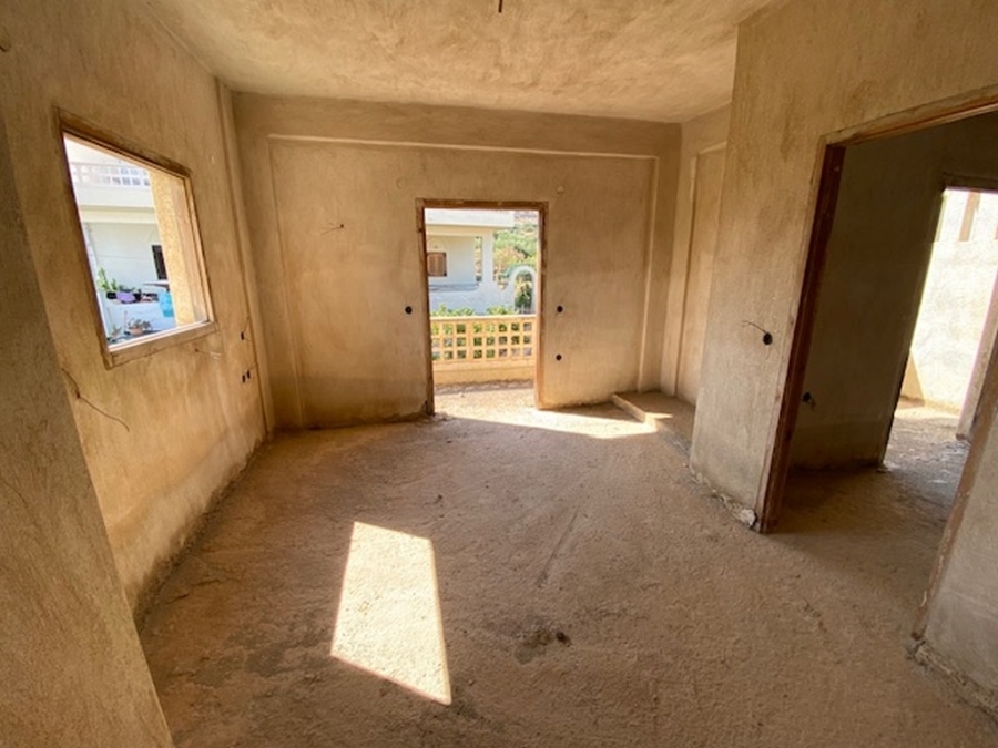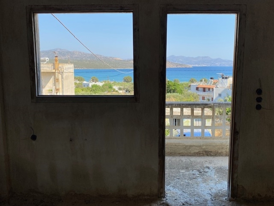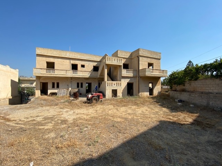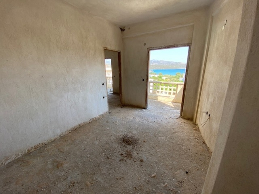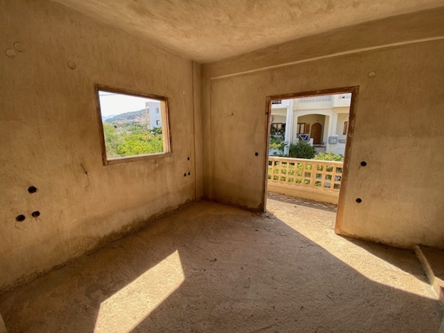 An unfinished apartment complex of 653 m2 is available for sale in the picturesque Kalo village at a distance of 300 meters from the sea and 75 km from the international airport of Heraklion. The building is located within a plot of 518m2 and is developed on three levels. The basement is 214sm2 and includes two stores of 99m2 and 115m2. The first floor has five apartments, two of which have 3 rooms and the three apartments have 2 rooms. The second floor has 4 two-room apartments. All apartments have their own bathrooms. Built in 1983, it adjoins the main road and has a view to the sea. In a developing area, this building, after renovation and completion, will be a worthwhile and profitable investment.