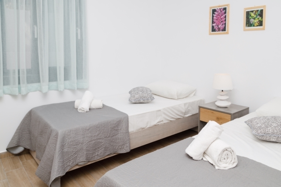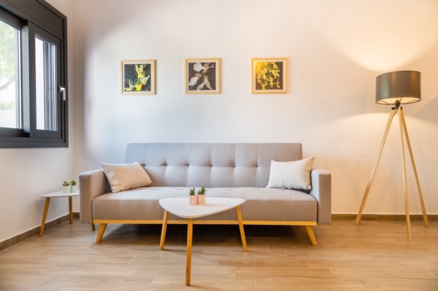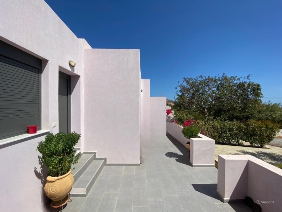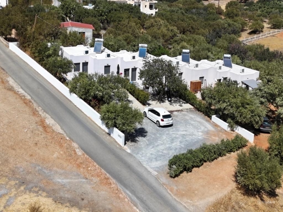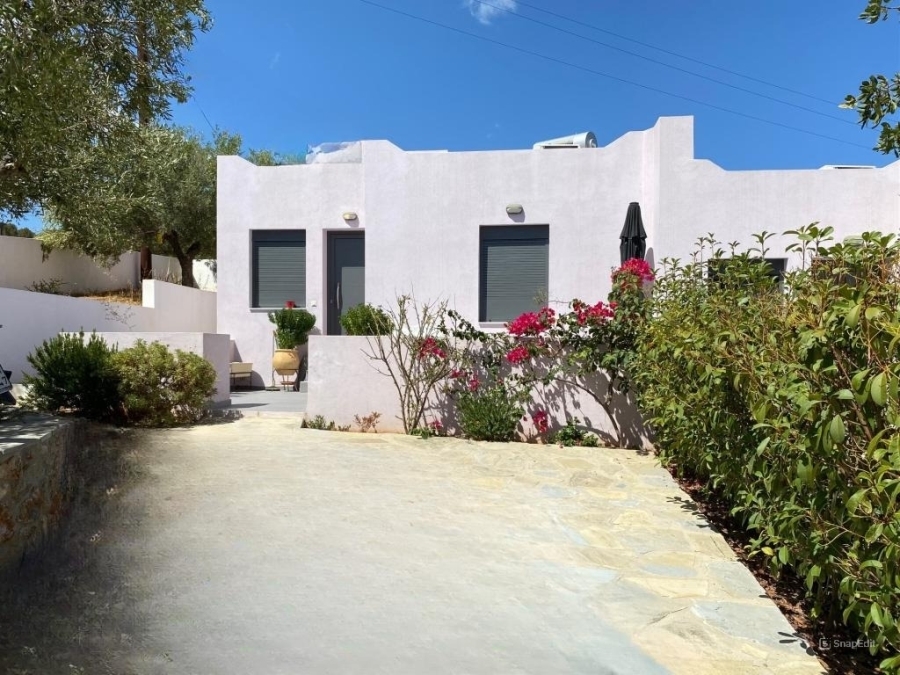 Modern house of 50m2 is available for sale just 100 meters from a sandy organized beach, 2.5 km from the picturesque town of Agios Nikolaos and 65 km from the international airport of Heraklion. It consists of an open area living room, a fully equipped kitchen, two bedrooms and a bathroom with a shower. Outside it opens onto a terrace and a beautifully landscaped garden. Renovated in 2019, it provides air conditioning, solar and thermal facade. Its direct access to the beach and the view to the sea and the surrounding area make it an ideal choice for private use or for its exploitation.
