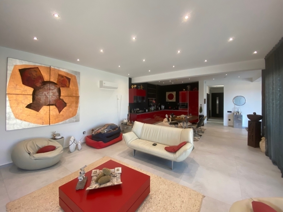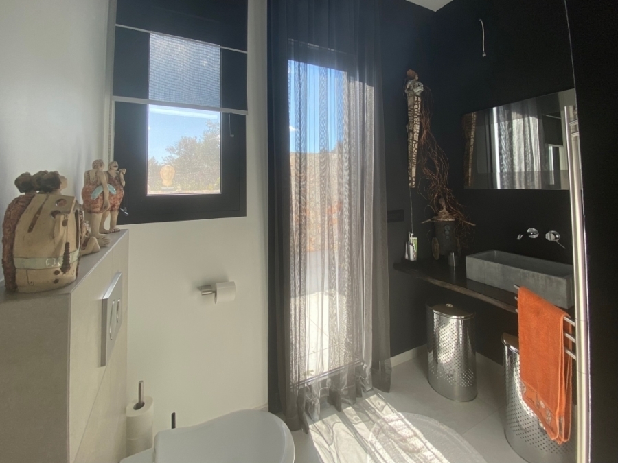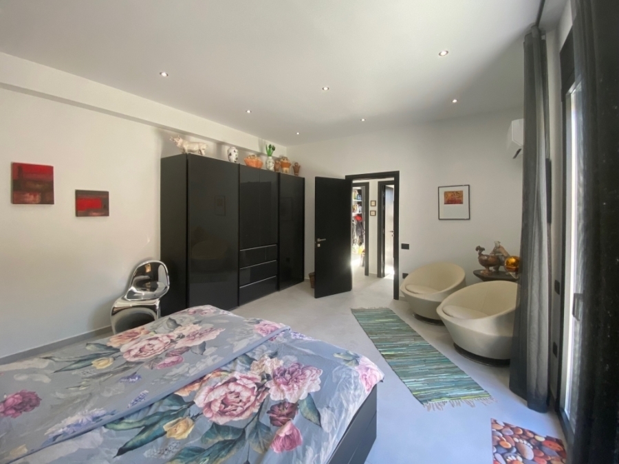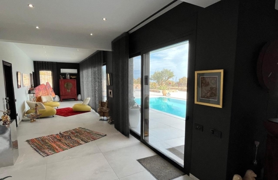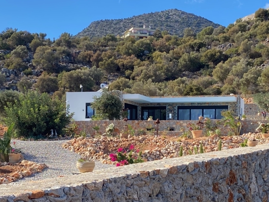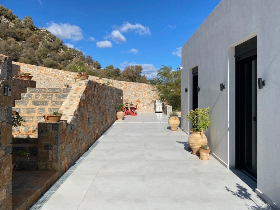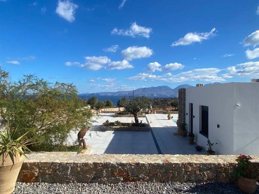 Luxury one level villa of 188m2 within a plot of 6.000 m2 located 3 km from the town of Agios Nikolaos, 2 km from the organized sandy beach and 68 km from the international airport of Heraklion. Built in 2022, it offers views of the sea and the countryside. It consists of a comfortable open area living- dining room and a fully equipped modern kitchen that opens onto a large terrace overlooking the 32m2 swimming pool. In addition, it has three comfortable bedrooms, a bathroom with shower and a storage room. Noteworthy is the additional building that provides up to 30m2. In the outdoor area there is a garden with trees, terraces and a spacious parking space. This villa, built with high quality materials, has solar, air conditioning and a security system. It is a remarkable choice for those who are looking for tranquility and privacy.