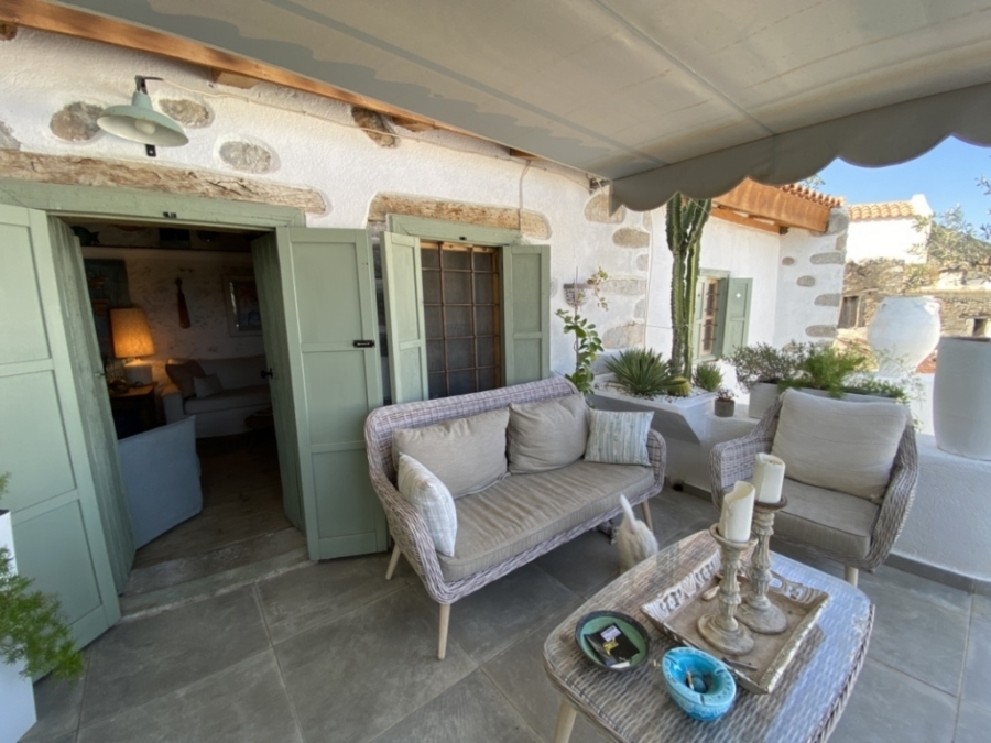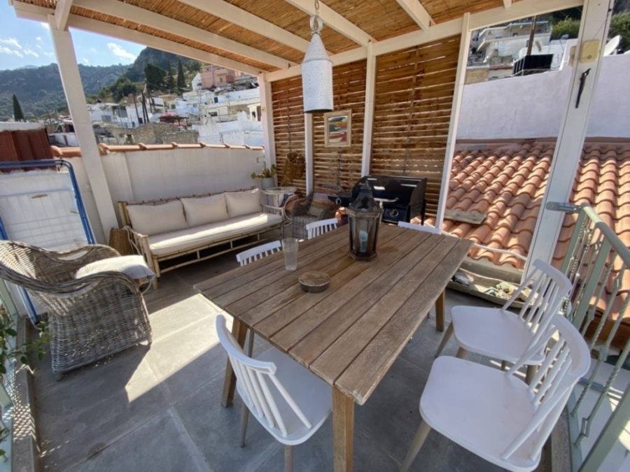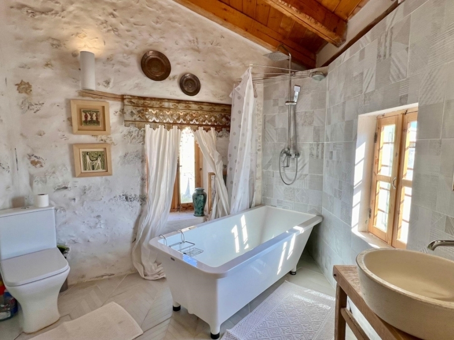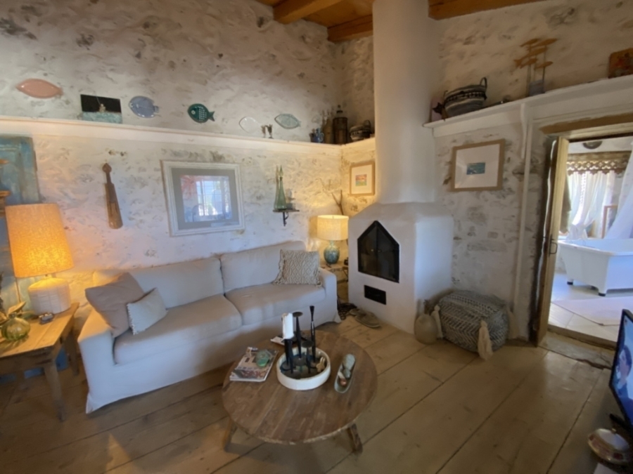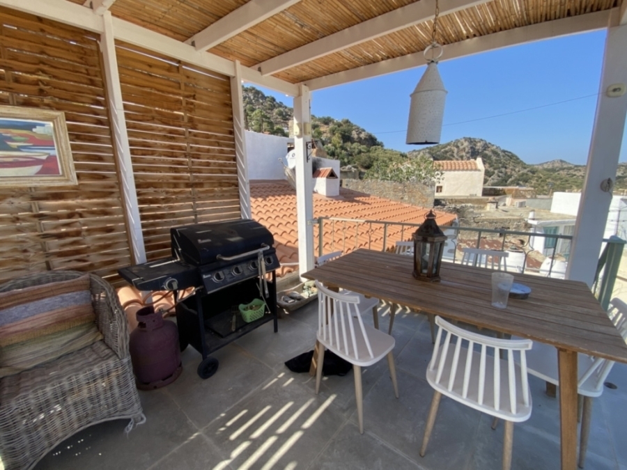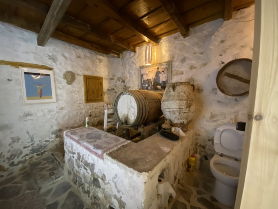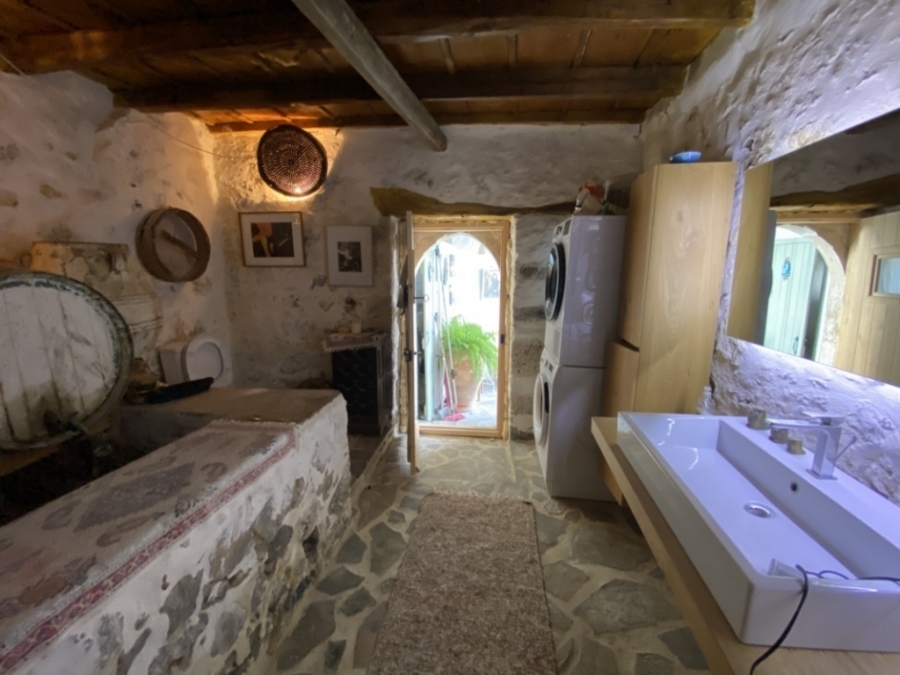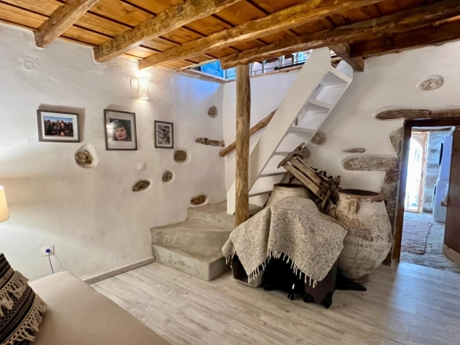 Renovated two-level detached house in total of 140 m2 is available for sale in a central location within the traditional village of Kritsa. It is 10 km from the town of Agios Nikolaos and its seas and 75 km from the International Airport of Heraklion. It consists of a ground floor that has a beautiful living room with a staircase which leads to the upper level. It also has two comfortable bedrooms and a special bathroom characterized by a place with a wine barrel in which part of it has been transformed into a shower. The upper level has access both inside the house and outside. It includes a kitchen with a traditional fireplace, a comfortable living room with a fireplace, a bedroom with a fireplace and a bathroom with a bathtub. The kitchen and the living room open onto a terrace that offers views of the village and the countryside. Opposite this house there is another house of 15m2 which needs renovation and could function as a guest house or a warehouse. The house is offered partially furnished and equipped and has solar, air conditioning and 3 fireplaces. It is characterized by traditional elements and has a special architecture that makes it stand out in a picturesque and hospitable village.