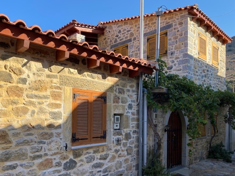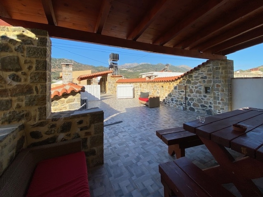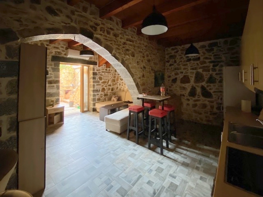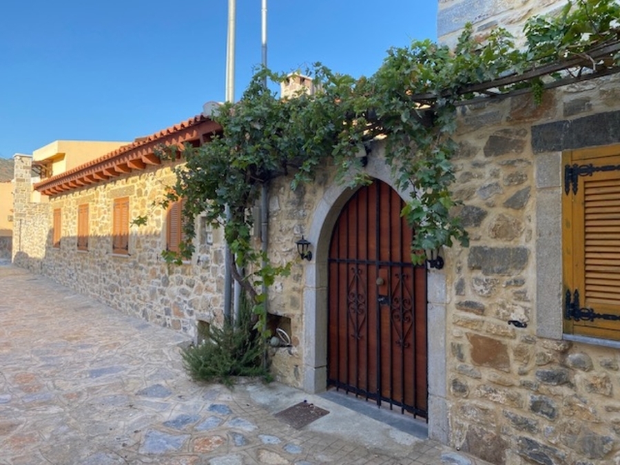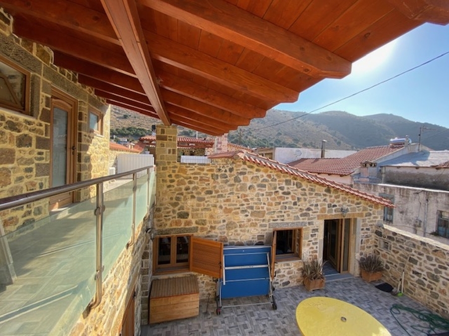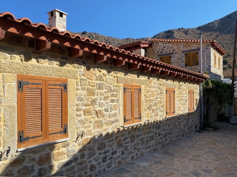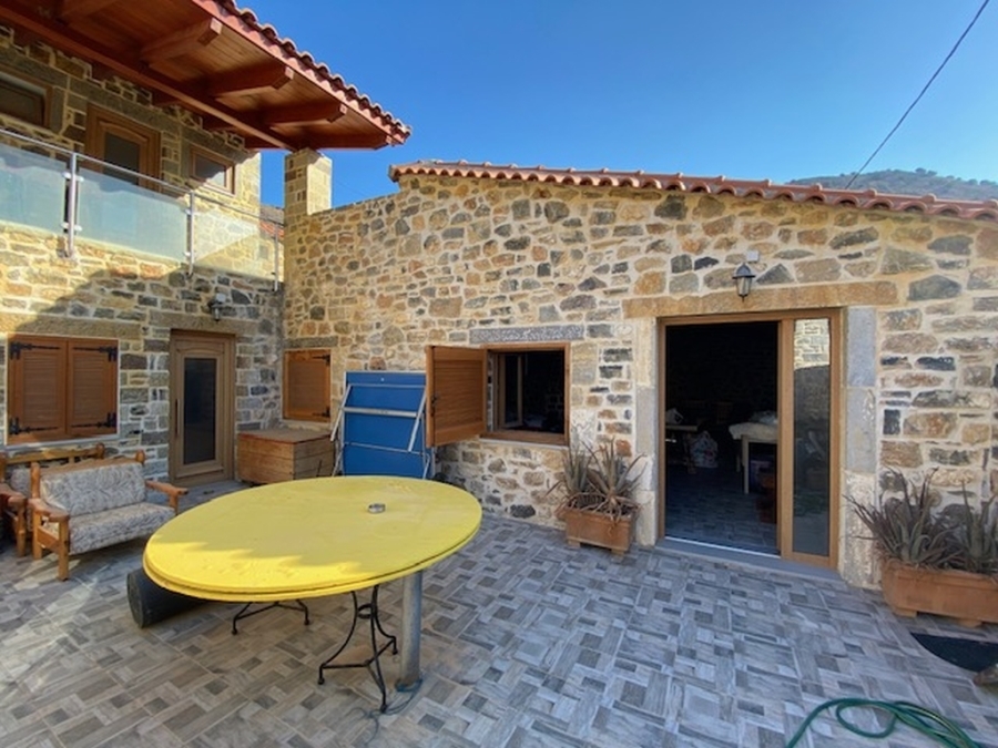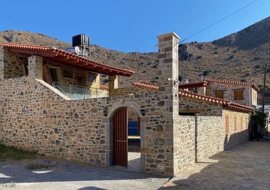 Two stone-built houses in total 269 m2 are available for sale in the heart of a traditional settlement near to the town of Agios Nikolaos. Renovated in 2018, they are located within a plot of 283m2. They are 8 km away from Agios Nikolaos and the sea and 57 km from the international airport of Heraklion. The one residence οφ 142m2 consists of an open area with a fireplace, a separate kitchen and a bedroom with an internal bathroom. The bedroom opens onto a terrace with a bbq. An external staircase leads to the terrace where it is designed for relaxation and there is also a W.C. The second residence of 126m2 consists of an open are room with a wood stove, a kitchen and a large bathroom. Also on the same level there is a bedroom with an en-suite bathroom. An external staircase leads to the second level where there is another bedroom with an internal bathroom, a storage room and a terrace. The two residences provide fully equipped kitchens, aluminum frames, wooden ceilings, air conditioning, solar and ready installations for central heating. Also, their construction inside and outside with stone keeps them cool in the summer and warm in the winter. Externally there are security cameras and it is surrounded by a stone wall to provide privacy. From the verandas there is a view of the surrounding area, making it an excellent choice of investment that does not exist like it in the area.