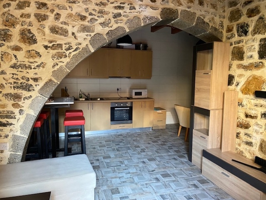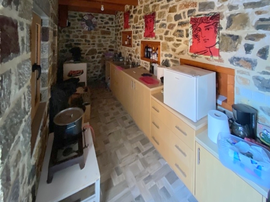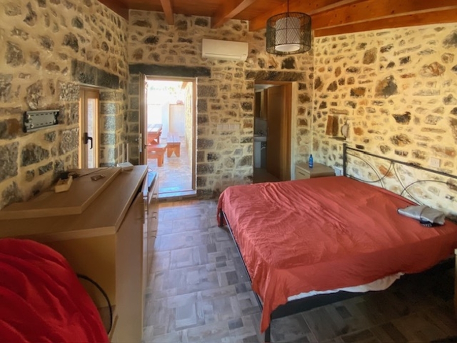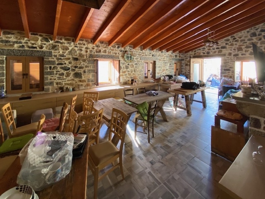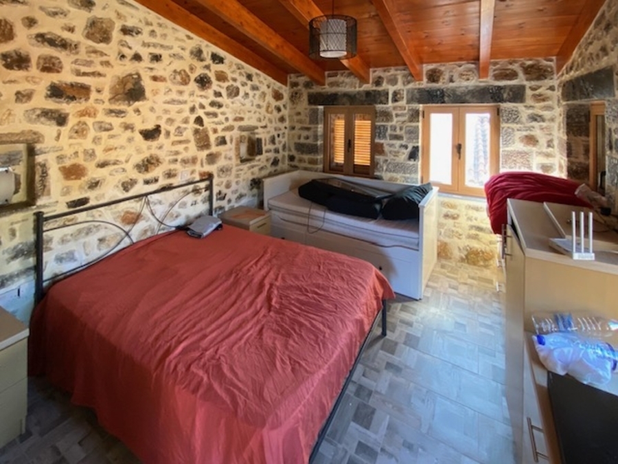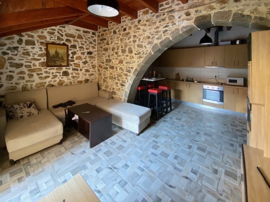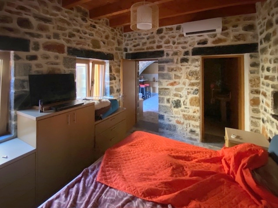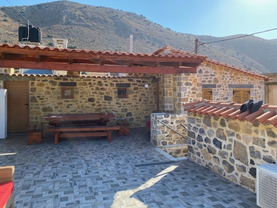 Two stone-built houses in total 269 m2 are available for sale in the heart of a traditional settlement near to the town of Agios Nikolaos. Renovated in 2018, they are located within a plot of 283m2. They are 8 km away from Agios Nikolaos and the sea and 57 km from the international airport of Heraklion. The one residence οφ 142m2 consists of an open area with a fireplace, a separate kitchen and a bedroom with an internal bathroom. The bedroom opens onto a terrace with a bbq. An external staircase leads to the terrace where it is designed for relaxation and there is also a W.C. The second residence of 126m2 consists of an open are room with a wood stove, a kitchen and a large bathroom. Also on the same level there is a bedroom with an en-suite bathroom. An external staircase leads to the second level where there is another bedroom with an internal bathroom, a storage room and a terrace. The two residences provide fully equipped kitchens, aluminum frames, wooden ceilings, air conditioning, solar and ready installations for central heating. Also, their construction inside and outside with stone keeps them cool in the summer and warm in the winter. Externally there are security cameras and it is surrounded by a stone wall to provide privacy. From the verandas there is a view of the surrounding area, making it an excellent choice of investment that does not exist like it in the area.