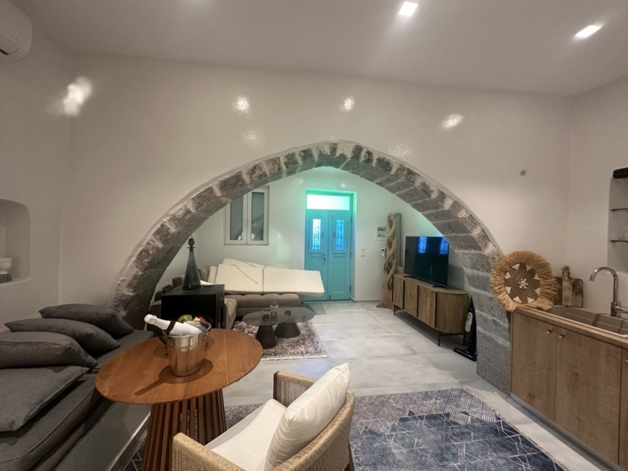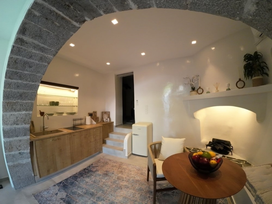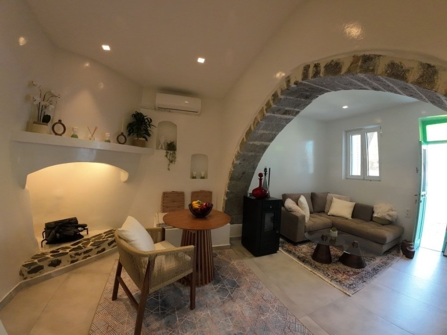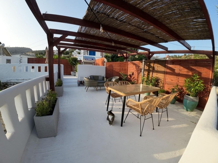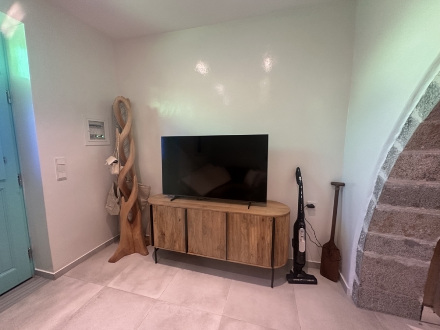 Beautiful detached house of 60m2 is available for sale in Milatos, Lasithi. Renovated in 2024, it is 1.7km from the beach, 24km from the town of Agios Nikolaos and 42km from the International Airport of Heraklion. It consists of an open-plan living room with dining area that is separated from a small kitchen by a stone arch. There is also a bedroom and a bathroom with shower. On the ceilings there are large wooden tree trunks that maintain the picturesque nature of the residence. It also has air conditioning, solar, stove and WIFI. From the terrace and veranda offers view of the sea and the surrounding area, making it a worthy investment choice.