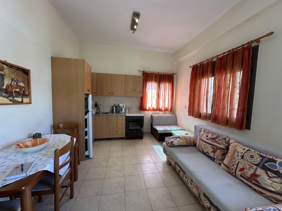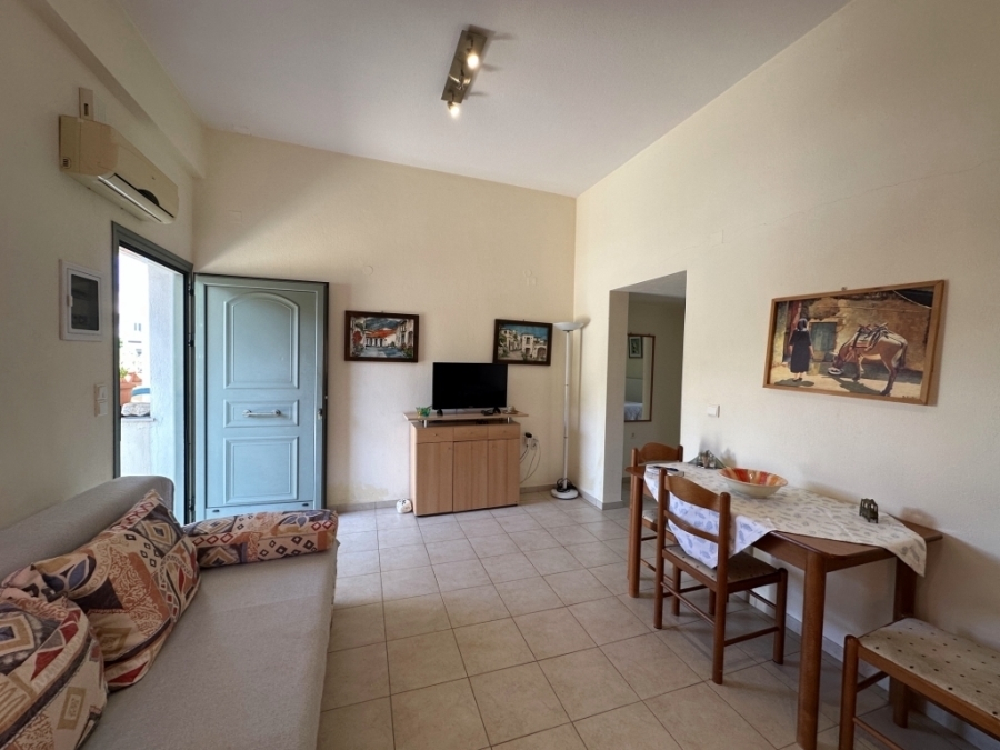 Ground floor apartment of 57 m2 is available for rent. It is located in Kalo Chorio and is 150 meters from the sea, 10 km from the picturesque Agios Nikolaos and 75 km from the international airport of Heraklion. The apartment consists of a spacious living room dining room with kitchen, a bathroom with bath and a fairly comfortable bedroom with wardrobe. From the balcony there is a wonderful courtyard and distant sea view ideal choice for those who are looking for a quiet area to stay. AVAILABLE FOR RENT FROM 20 OF OCTOBER