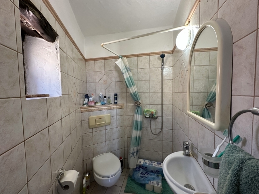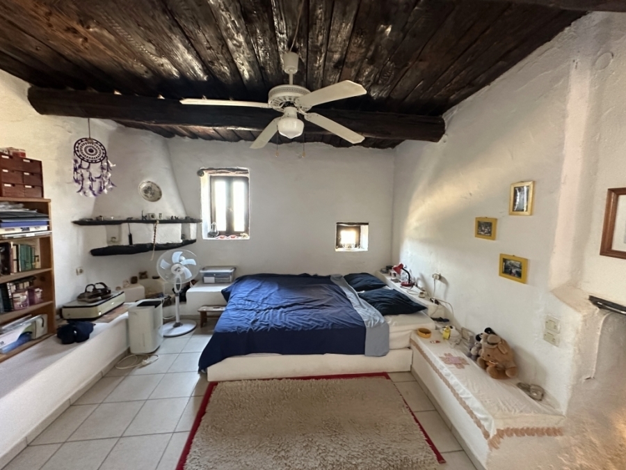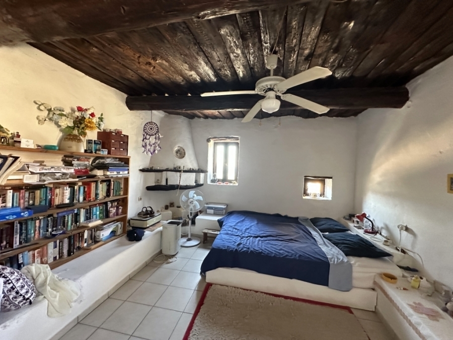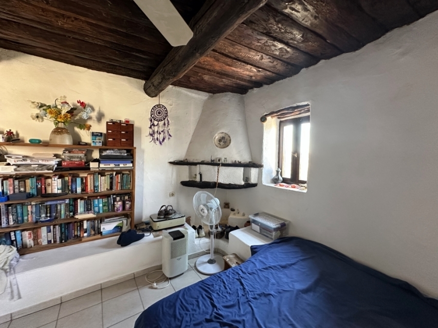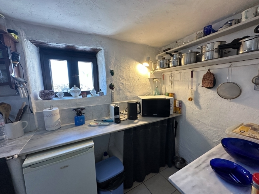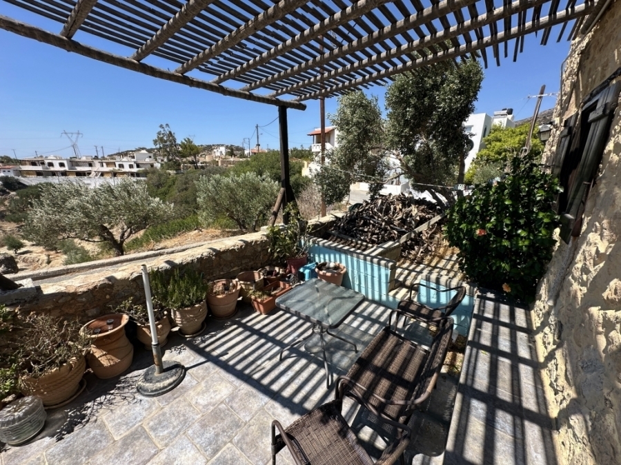Old stone-built house of 90m2 within a plot of 110m2 is available for sale in the Koutsounari area of Ierapetra. It is just 1km from the sea, 10km from the city of Ierapetra and 40km from the International Airport of Sitia. Renovated in 2007, it is developed on three levels. The house opens onto the ground floor which has the living room. Three steps down lead us to the kitchen, the bedroom and the bathroom with a corner bathtub. Going up three steps above the living room there is also a bedroom with a picturesque form of a fireplace and the bathroom with a shower. From this level it leads us to the veranda with a wonderful view of the Cretan Sea. It has a wooden ceiling with fans, air conditioning in the living room and solar. Outside it has a courtyard with a wooden pergola. It is a good investment choice in a quiet area as a permanent or holiday residence.