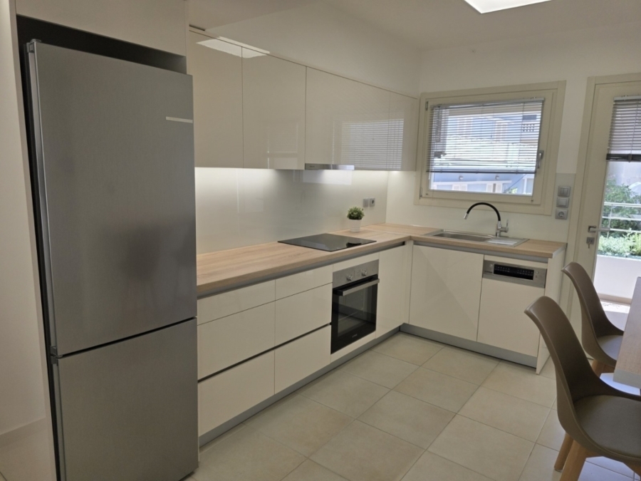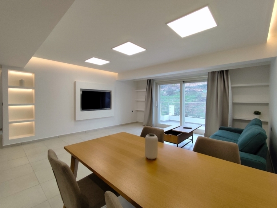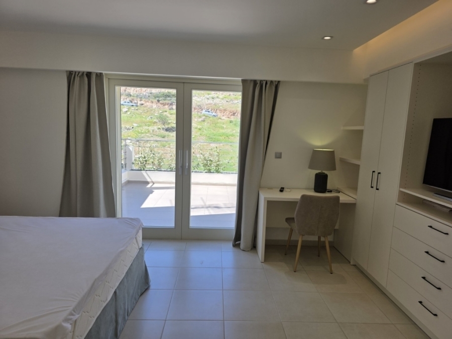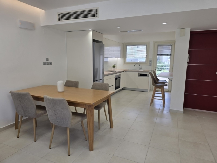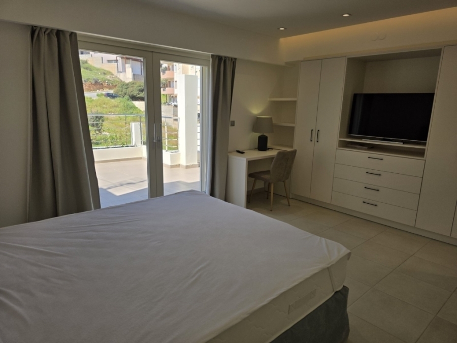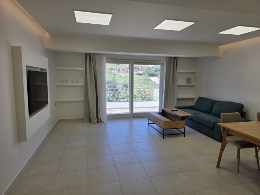 Furnished third floor apartment of 90m2 is available for rent within the city of Aghios Nikolaos. It is 500 meters from the beach and 65 km from the International Airport of Heraklion. It consists of an open-plan living area, a fully equipped modern kitchen, two bedrooms and a bathroom with shower. It is airy and bright and offers views of the surrounding area with a balcony in front and back. It has air conditioning and WI-FI. It is an ideal choice for long-term accommodation close to the city's amenities. AVAILABLE FROM 2nd OF OCTOBER 2025