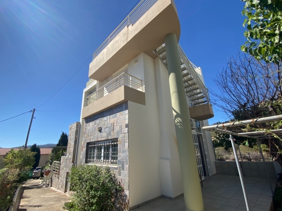 Maisonette of 135m2 is available for rent in the picturesque village of Kroustas. It is 15 km from the town of Agios Nikolaos with its beaches and 80 km from the international airport of Heraklion. On the lower level there are the living room, a comfortable kitchen and a W.C. The upper floor consists of a bathroom and two bedrooms, one of which has an internal bathroom. The house, built in 2005, has central heating, solar and air conditioning. Externally there is a storage room and a courtyard with a pergola for relaxation as well as parking for one vehicle. In a quiet part of the village and with a view of the surrounding area and the distant sea, it is an ideal choice as a permanent or holiday residence.