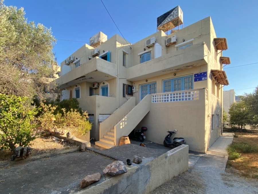 Building of 3 levels in total 435m2 that includes 7 apartments of 259,3m2 and ground floor of 176m2 is available for sale. It is located within a settlement in the coastal area of Istron, Kalo Chorio. It is developed on three levels. The apartments are located on the first and second level and range from 24m2 to 48m2. Also, the ground floor of 176m2 is unfinished with the possibility of utilization as the new owner wishes. The complex is just 300 meters from the sea, 10 km from the picturesque town of Agios Nikolaos and 75 km from the international airport of Heraklion. It offers views of the sea and the countryside. It needs renovation, after which it can be transformed into tourist apartments with high yield through short-term rental. The outdoor space can be used for parking, swimming pool, barbecue, etc. It is certainly a worthy investment choice with prospects, double as a supermarket, pharmacy, restaurants, cafes, etc.