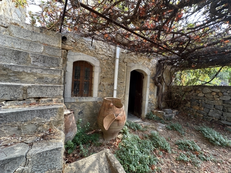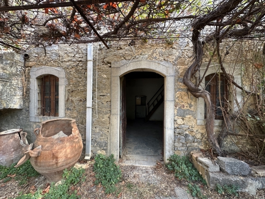 Two old houses in total of 205.67m2 are available for sale in the village of Milatos near Neapoli, Lassithi. They are located within a plot of 189.86m2. and are just 1 km from the sea, 11 km from Neapoli and 53 km from the International Airport of Heraklion. The first stone house of 82.14 m2 is developed on two levels. On the ground floor it opens into two rooms. Then there is an external stone staircase that leads to the second level where there is another room. Outside the house there is a toilet and a spacious courtyard - garden with fruit trees and a large vine. The second house of 123.53m2 is connected by a door to the ground floor of the first house. The second house consists of a separate kitchen and three rooms. From one room we are led to a comfortable veranda from where an external staircase leads us to the ground floor of the house. After reconstruction it will be an ideal permanent or holiday residnce in a quiet and hospitable area. There is also the possibility of exploiting the houses, combining them or even configuring them as two independent houses. This is certainly a property with prospects.