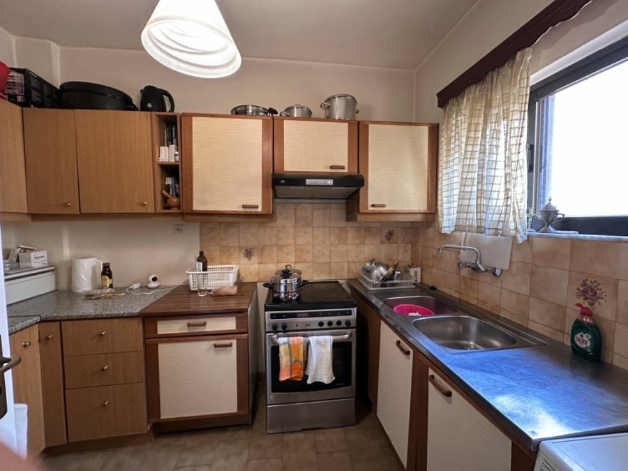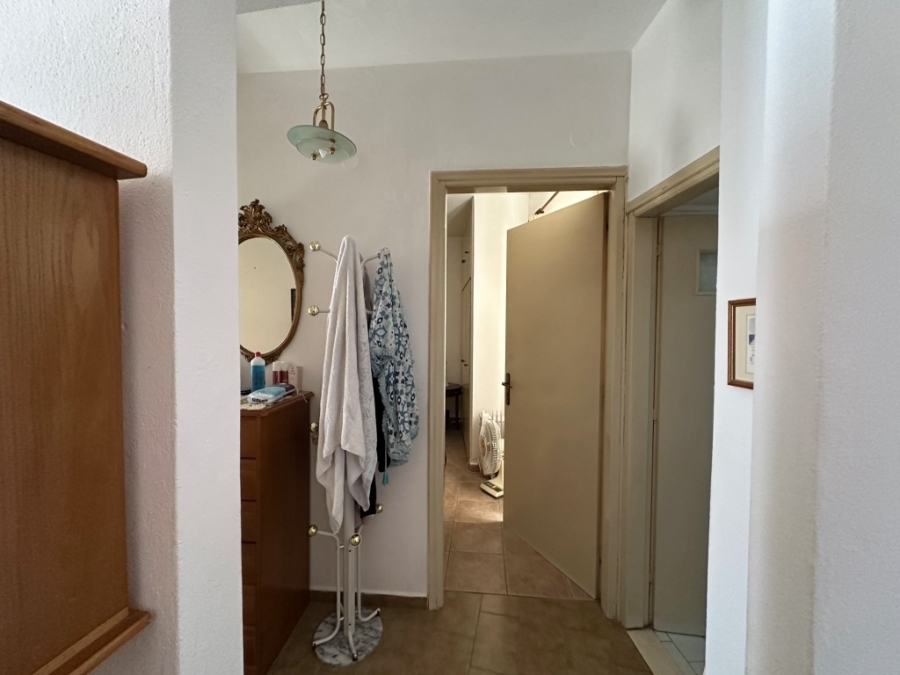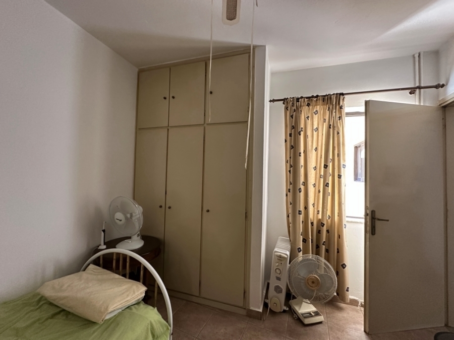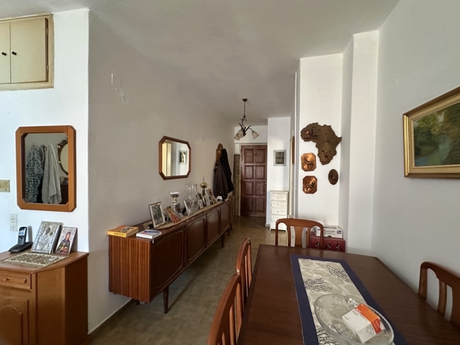 A 72m2 first floor apartment is available for sale in a central location in the town of Agios Nikolaos, just 100 meters from a sandy organized beach and 65km from the International Airport of Heraklion. The apartment consists of a living and dining area, a kitchen, two bedrooms with ceiling fans and a bathroom with a bathtub. It has aluminum windows and is located in a very good location in the town and close to several amenities.