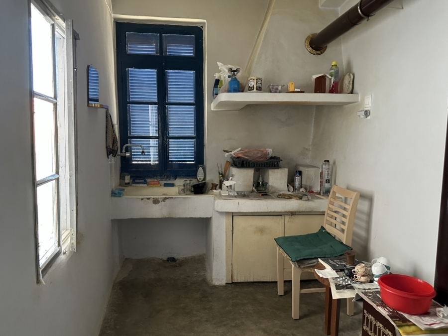 A house of 119 m2 is available for sale in the picturesque village of Kritsa, Lassithi. It is 10 km from the sea and the town of Agios Nikolaos and 75 km from the international airport of Heraklion. It is located next to almost all the amenities of the village and has access from two roads. The upper level consists of a large open area room, which opens to a balcony with views of the countryside and the distant sea, and another smaller room. A staircase leads us to the middle level where there is a kitchen, a bedroom and another room. On the lower level there is a storage room, a WC and an internal courtyard. After renovation, it will be a beautiful house in the heart of the village, ideal also for its exploitation.
