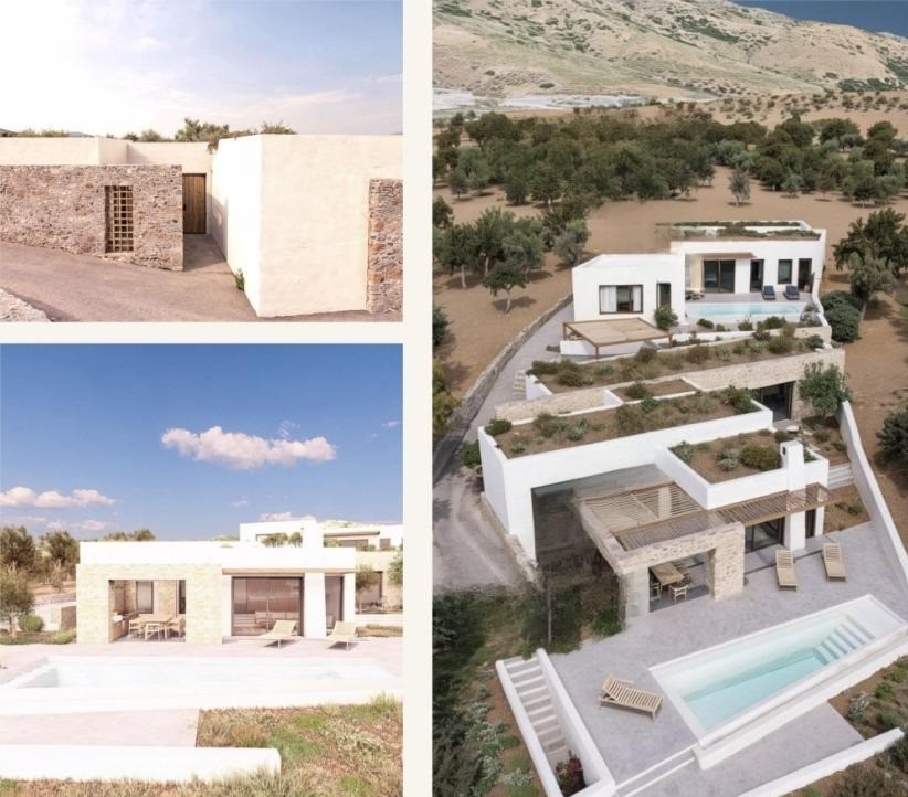 A unique plot of 1.395.20 m2 is for sale on the outskirts of the village of Kroustas. It is located 14 km from the sea and Agios Nikolaos, as well as 73 km from the International Airport of Heraklion . The area is flat with slight slopes and has water and electricity supplies nearby. There is a building permit that allows the construction of two independent houses of 200m2 each one, both with private swimming pools. One house will be located within 830.25m2 and the other within 564.95m2 Each will have a living room, dining room, 4 bedrooms with private bathrooms and a WC. Their swimming pools will be 27m2 each one. The design has been carefully done to ensure both privacy and accessibility to the two houses. Due to its privileged location, it offers unbeatable views of the sea and the mountains, making it an excellent investment choice for the construction of two residences in a quiet area with the possibility of also exploiting them.