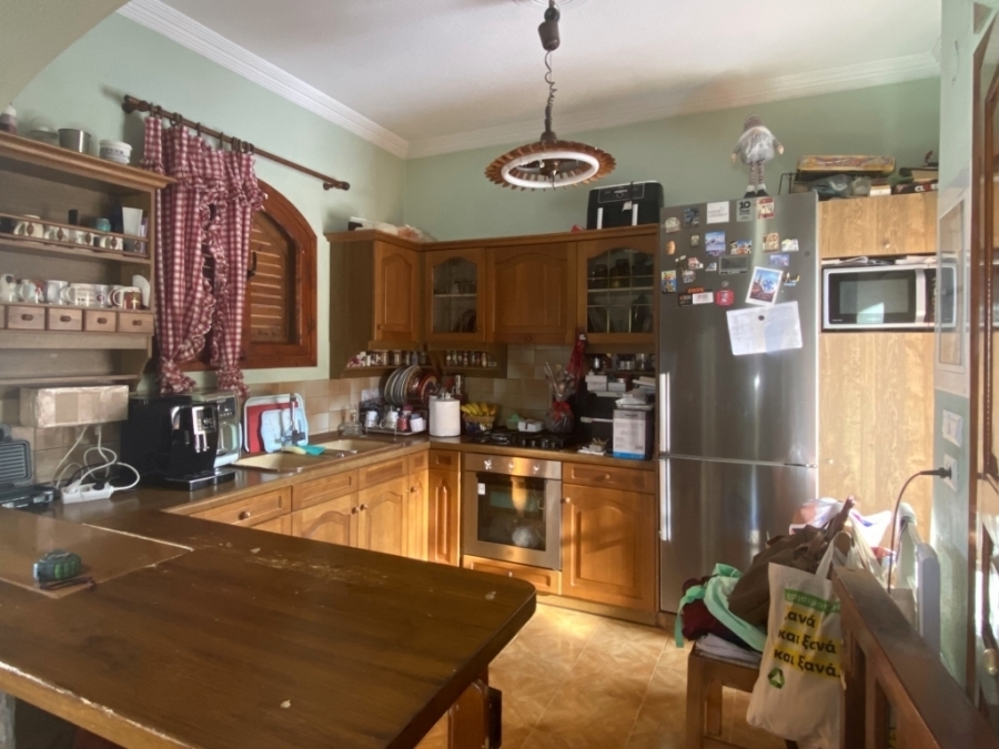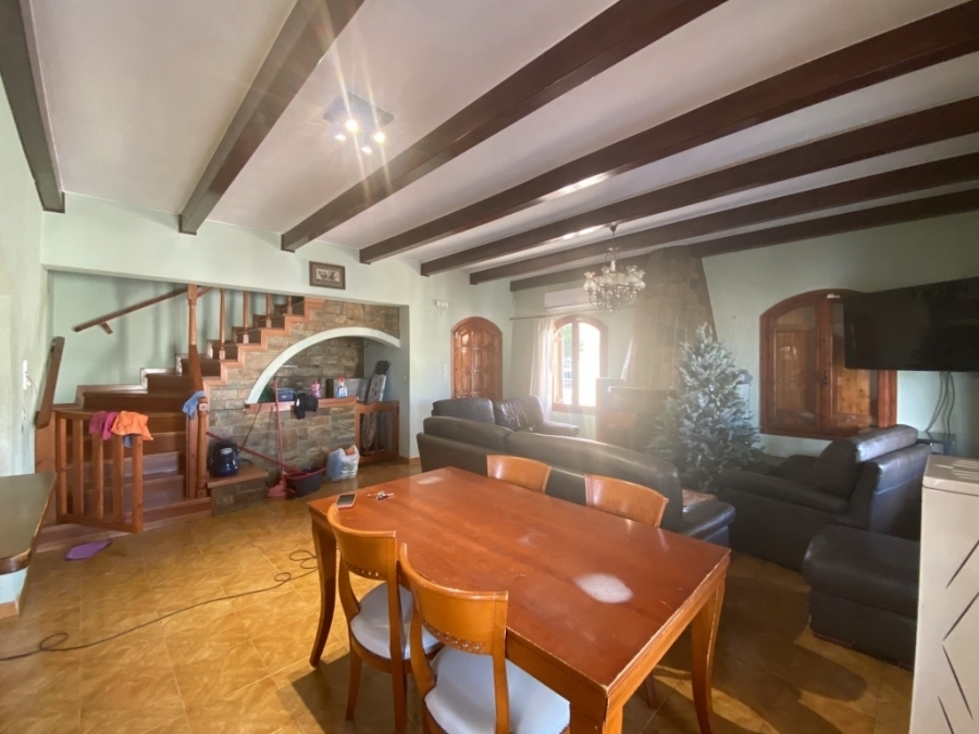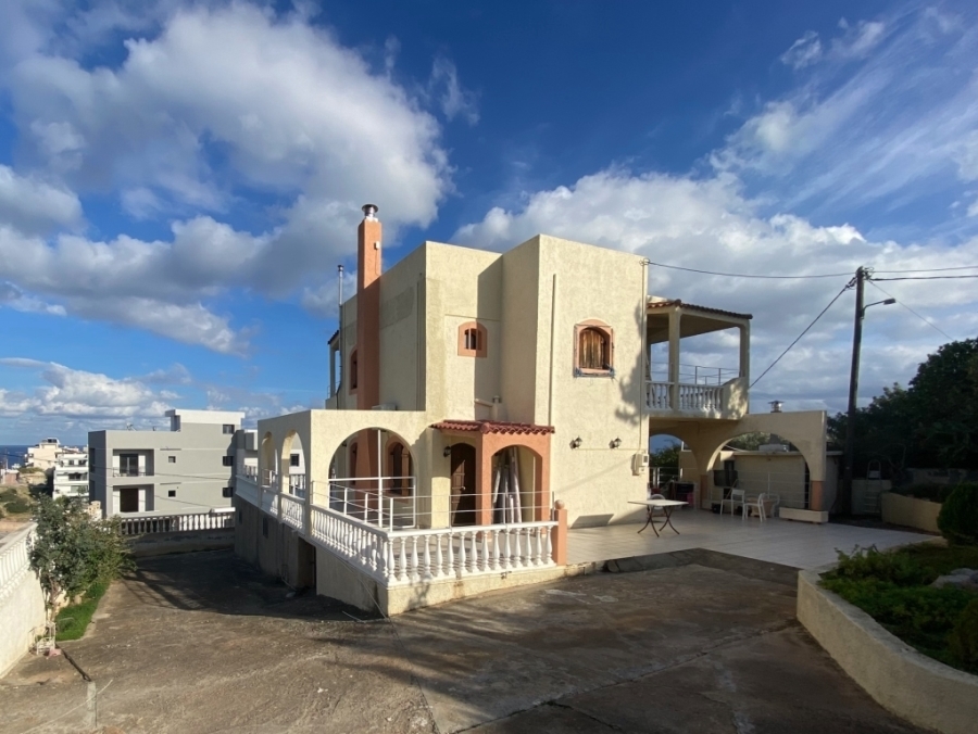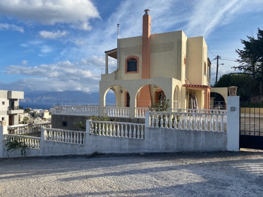 Τwo-storey detached house with a basement in total 230m2 is available for sale within the city of Agios Nikolaos. It is 800 meters from an organized sandy beach and 65 km from Heraklion international airport. Specifically, it consists of: The ground floor of 69.83m2 which has an open-plan kitchen, dining room and living room with fireplace. The first floor of 56.93m2 has three bedrooms and a bathroom. The basement of 103.77m2 includes an open area kitchen, living room, dining room, two bedrooms and two bathrooms. It offers views of the sea and the surrounding area while being close to the city's amenities.