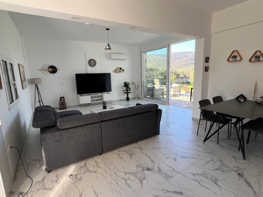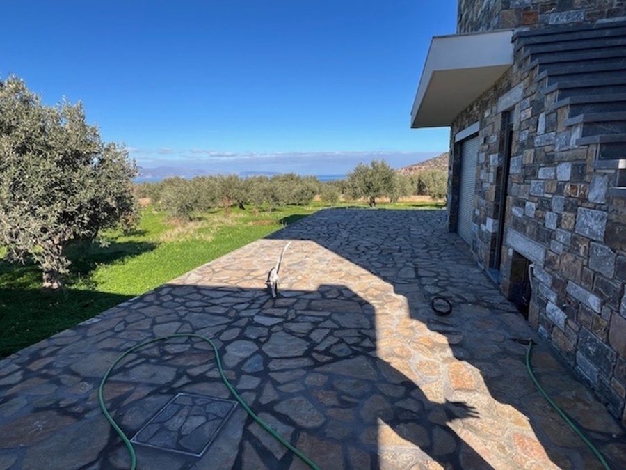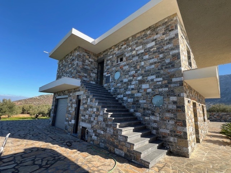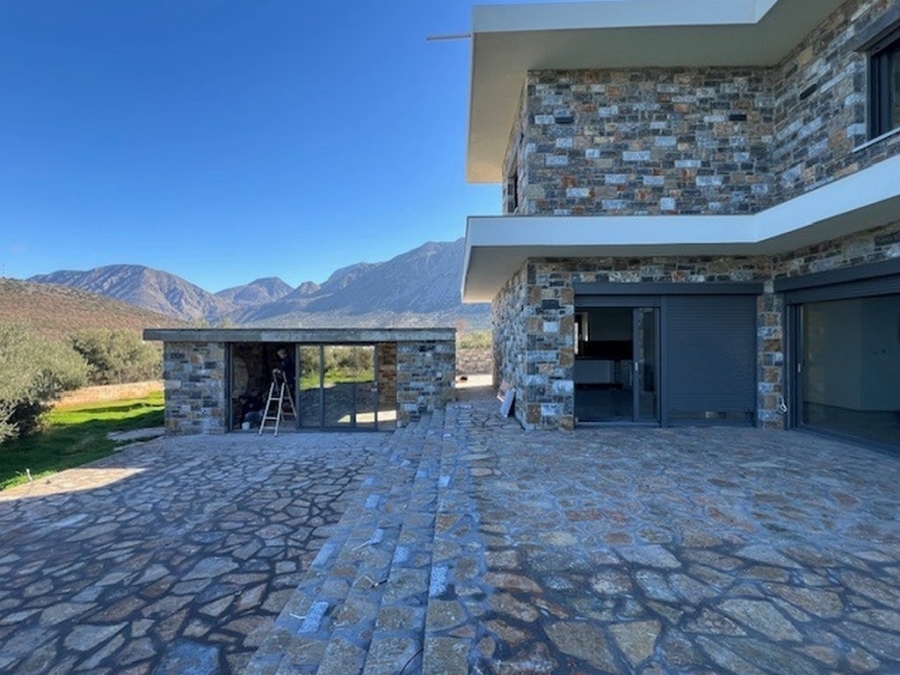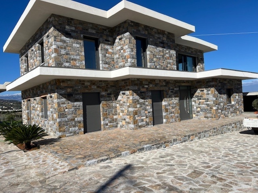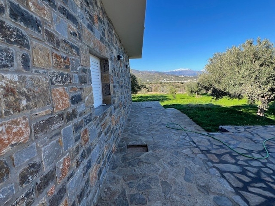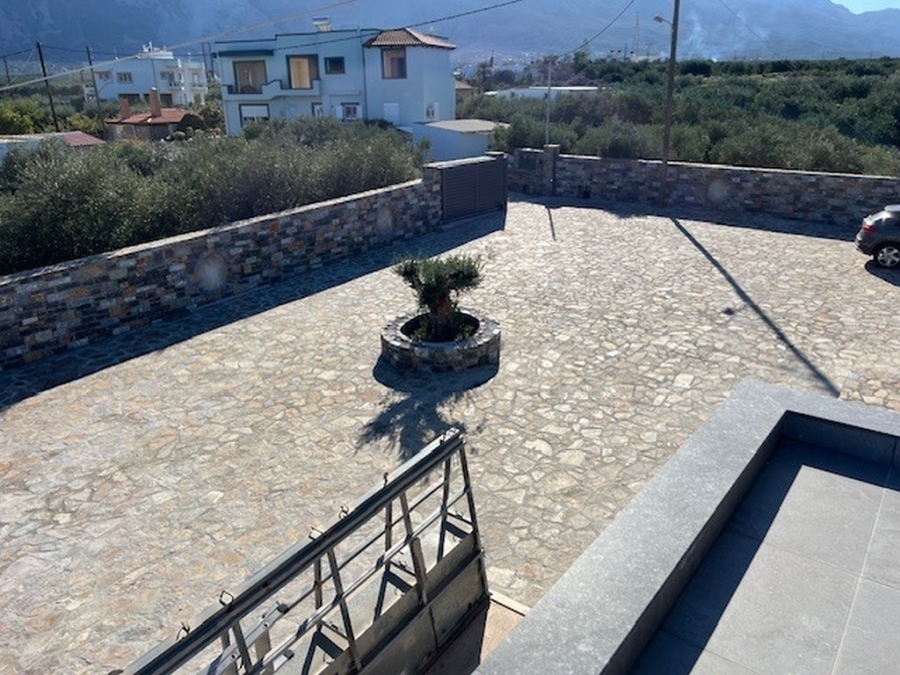 A complex of 3 apartments in total area of 355m2 is available for sale in the area of Pachia Ammos, Ierapetra. It is located within a plot of 4.000 m2 just 400 meters from the sea, 13 km from the city of Ierapetra and 45 km from the airport of Sitia. Specifically, these are two buildings that are covered with stone, giving a distinctive character to the entire property. One building consists of a ground floor apartment of 75m2 fully furnished and equipped, consisting of an open area living room and equipped kitchen, one bedroom and one bathroom. The second building has the other two apartments (ground floor and first floor), each of which is 130m2 and has an open area with an equipped kitchen, living room, three bedrooms and a bathroom. Additionally, there is a separate entertainment area of 20m2. All apartments provide air conditioning, solar, aluminum frames. Externally there are comfortable verandas and a garage for three vehicles and the possibility of building a swimming pool is provided if the new owner wishes. The property is surrounded by olive trees providing tranquility, views of the sea and the countryside. A newly built construction in modern lines contributing significantly to comfortable and functional living conditions.