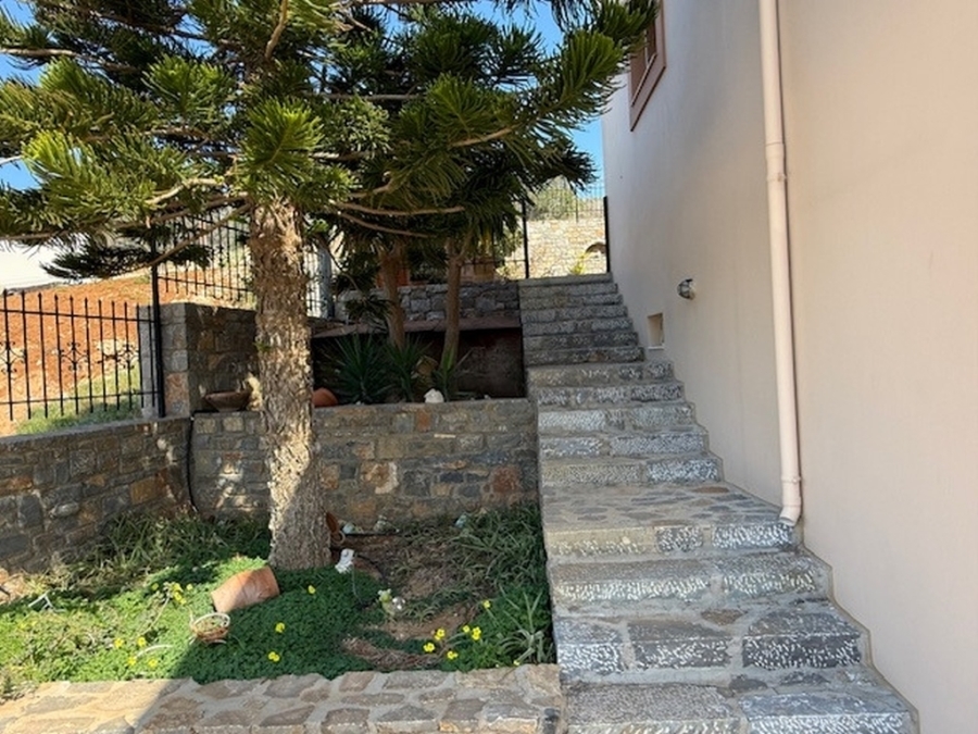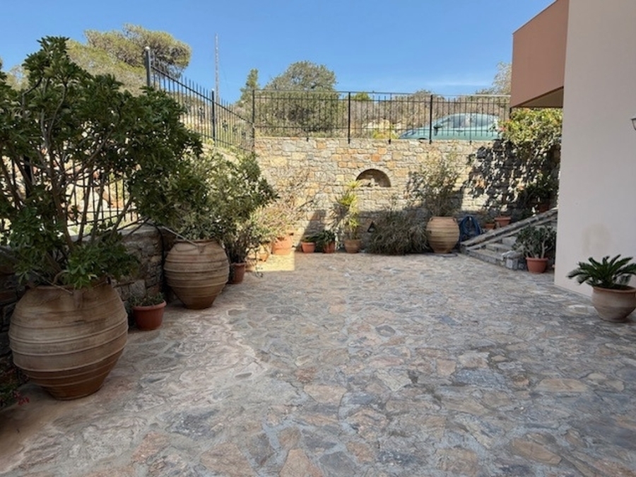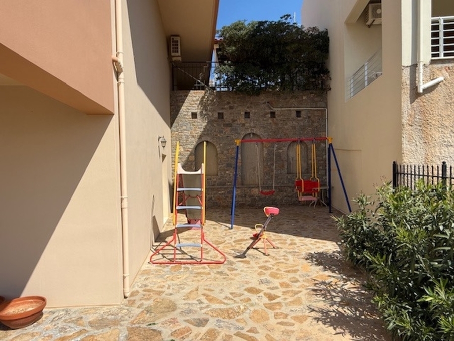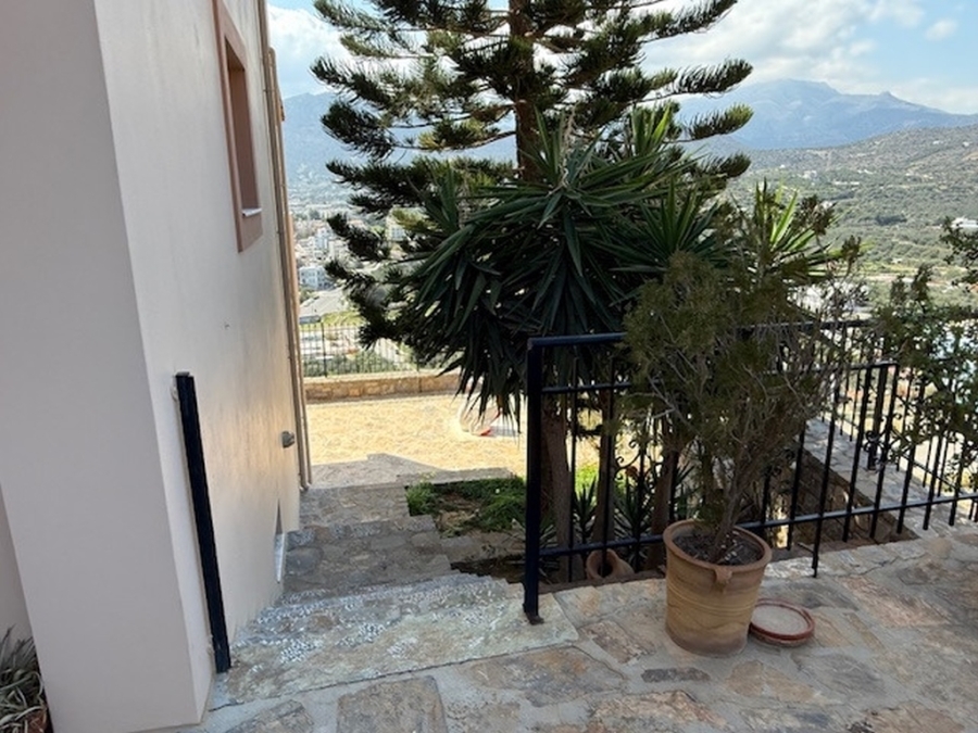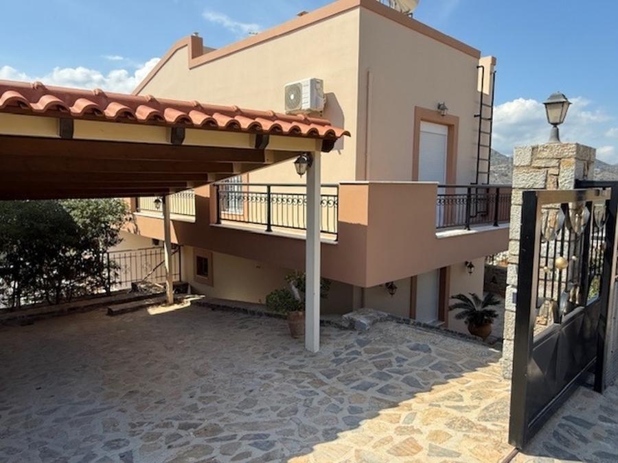 A nice detached house of 160m2 is available for sale within a plot of 500m2 in the area of Agios Nikolaos, East Crete. It is located on a hill in the city and is 700 meters from the sea and 65 km from the International Airport Heraklion. The house maintains its privacy and opens on the ground floor to a large open-plan living - dining area and a fully equipped kitchen. Also on the same level there is a WC and a storage room. From the living room windows it leads us to a comfortable balcony with an excellent panoramic view of the city and the sea. The basement has been converted into a playroom - gym with a wooden floor and a large mirror. There is also a storage room and a WC. The first floor includes four comfortable bedrooms and a large bathroom with a bathtub. It provides air conditioning, solar, central heating, fireplace and aluminum frames. Outside there are landscaped courtyards with stone floors and walls surrounded by flowers. There is also a space designed as a playground and a parking area with pergola. Around the detached house there are balconies offering amazing views of the surrounding area. Certainly a worthy choice for a permanent or holiday residence close to the city`s amenities.