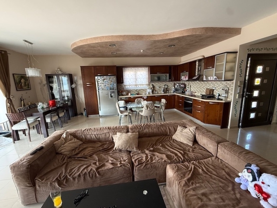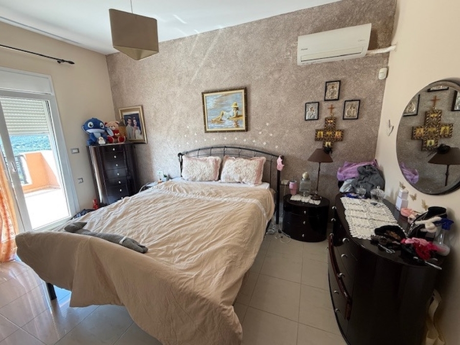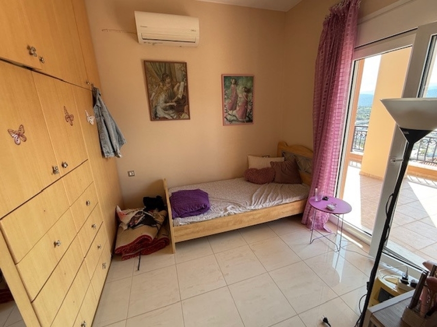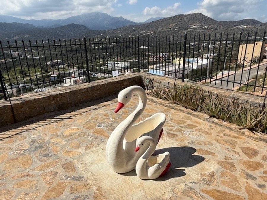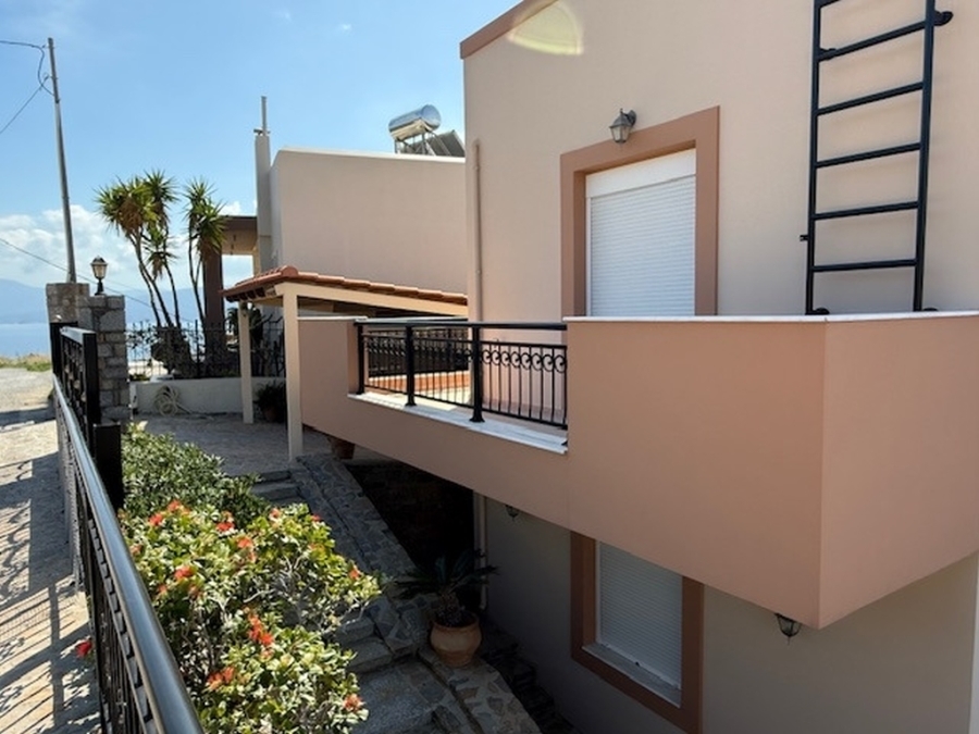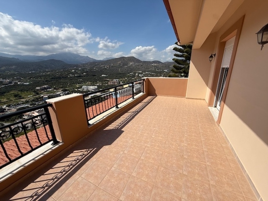 A nice detached house of 160m2 is available for sale within a plot of 500m2 in the area of Agios Nikolaos, East Crete. It is located on a hill in the city and is 700 meters from the sea and 65 km from the International Airport Heraklion. The house maintains its privacy and opens on the ground floor to a large open-plan living - dining area and a fully equipped kitchen. Also on the same level there is a WC and a storage room. From the living room windows it leads us to a comfortable balcony with an excellent panoramic view of the city and the sea. The basement has been converted into a playroom - gym with a wooden floor and a large mirror. There is also a storage room and a WC. The first floor includes four comfortable bedrooms and a large bathroom with a bathtub. It provides air conditioning, solar, central heating, fireplace and aluminum frames. Outside there are landscaped courtyards with stone floors and walls surrounded by flowers. There is also a space designed as a playground and a parking area with pergola. Around the detached house there are balconies offering amazing views of the surrounding area. Certainly a worthy choice for a permanent or holiday residence close to the city`s amenities.