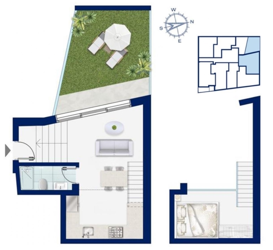 Ground floor luxury apartment of 31.34m2 is available for sale next to all amenities in the cosmopolitan town of Agios Nikolaos. It is just 50 meters from the sea and 65 km from the International Airport of Heraklion. The apartment is furnished and opens to an open plan living area, a fully equipped modern kitchen and a bathroom with a bathtub. A staircase leads to a loft where the bedroom is. The open plan space leads to a garden of 16,42m2. It has a hot and cold air conditioning system, and solar. Undoubtedly, this apartment after its completion will be an excellent investment option in a sought-after area of the city.Completion in summer 2026.