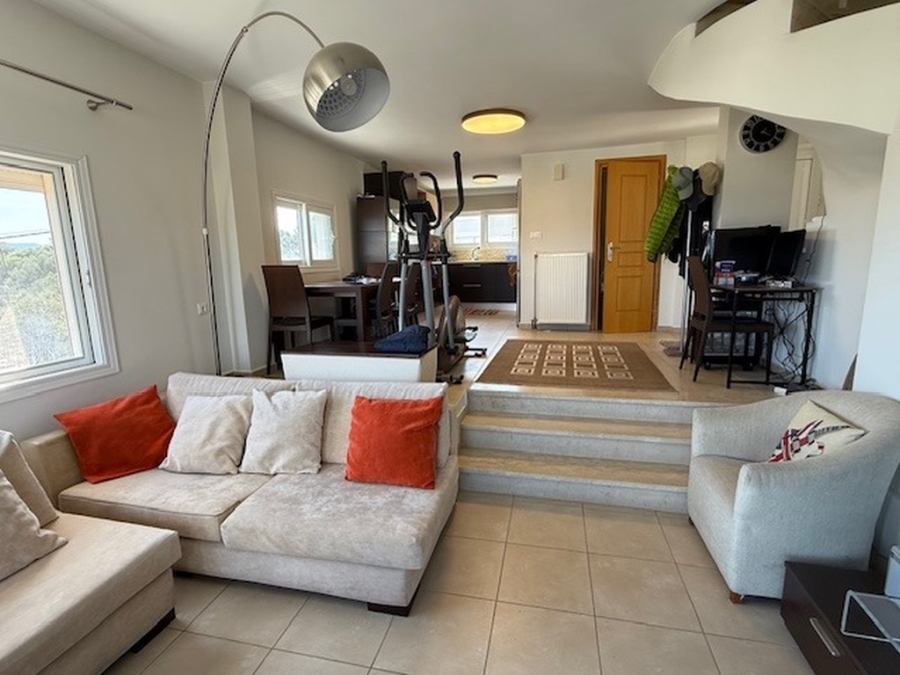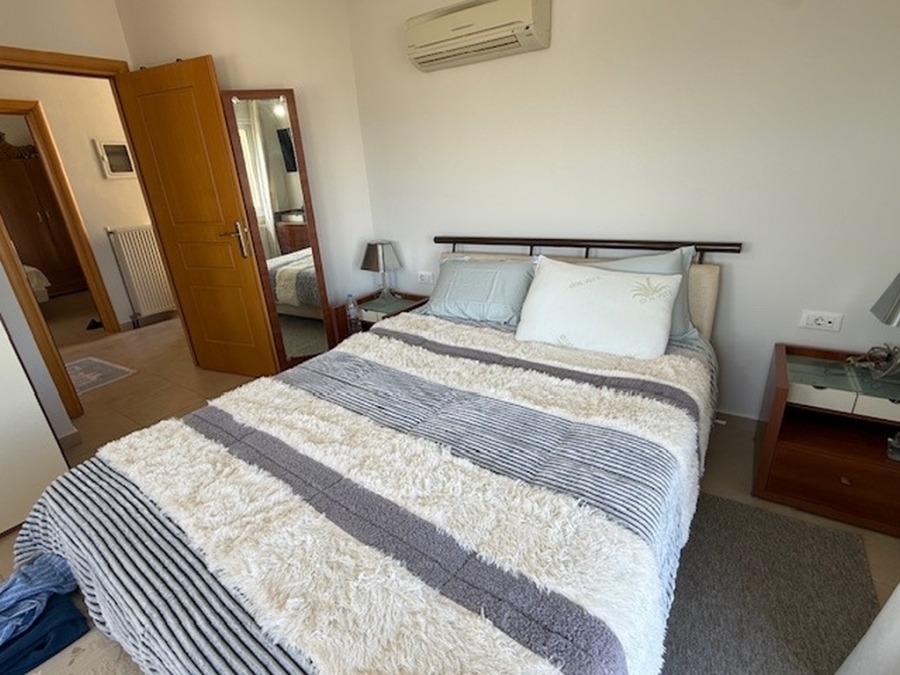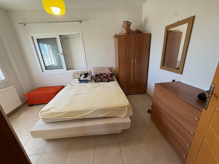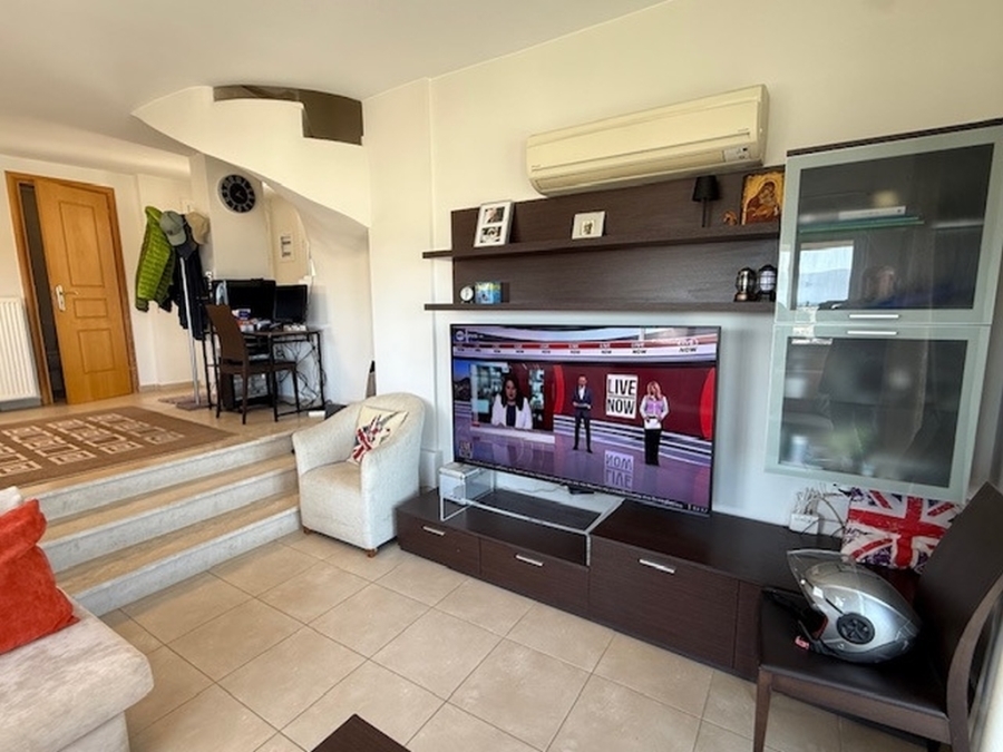 Apartment - maisonette of 100 m2 is available for sale in the town of Agios Nikolaos in Eastern Crete. It is located within an apartment complex and is just 150 meters from the beach, 1 km from the town of Agios Nikolaos and 65 km from the International Airport of Heraklion. The ground floor consists of the kitchen, the dining room, a storage room and a W.C. Going down three steps there is the living room that opens with a glass door to the balcony overlooking Mirabello Bay. Stairs lead to the upper floor which has two bedrooms and a bathroom. Equally wonderful views are offered from this level to the sea and the surrounding area. The apartment provides air conditioning, central heating, solar as well as an open parking space. It is an ideal investment for those who prefer to stay in a quiet environment, but also close to all the amenities of the city.