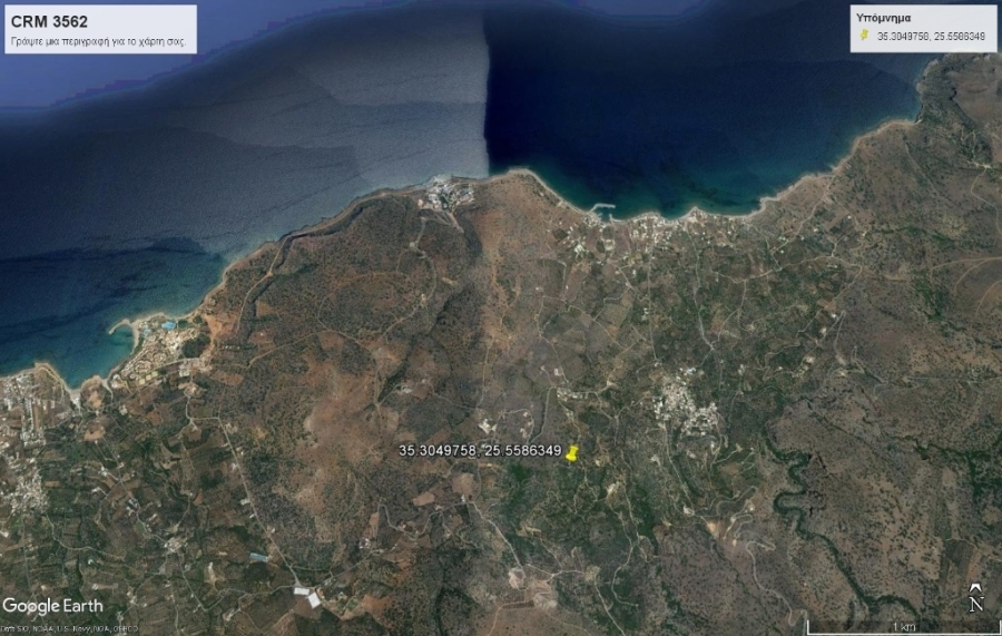 A plot of 8.119m2 is available for sale in the area of Milatos. It is 2km away from the sea, 12km from Neapolis and 44km from the international airport of Heraklion. It offers beautiful sea views, has access from a rural road and contains 32 olive trees.