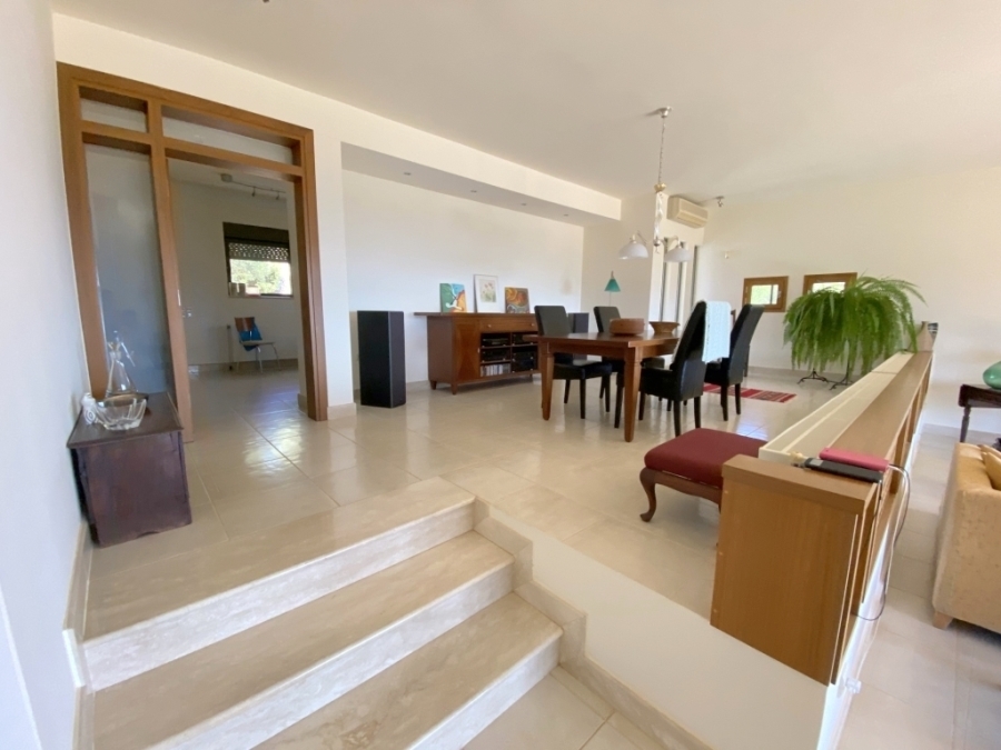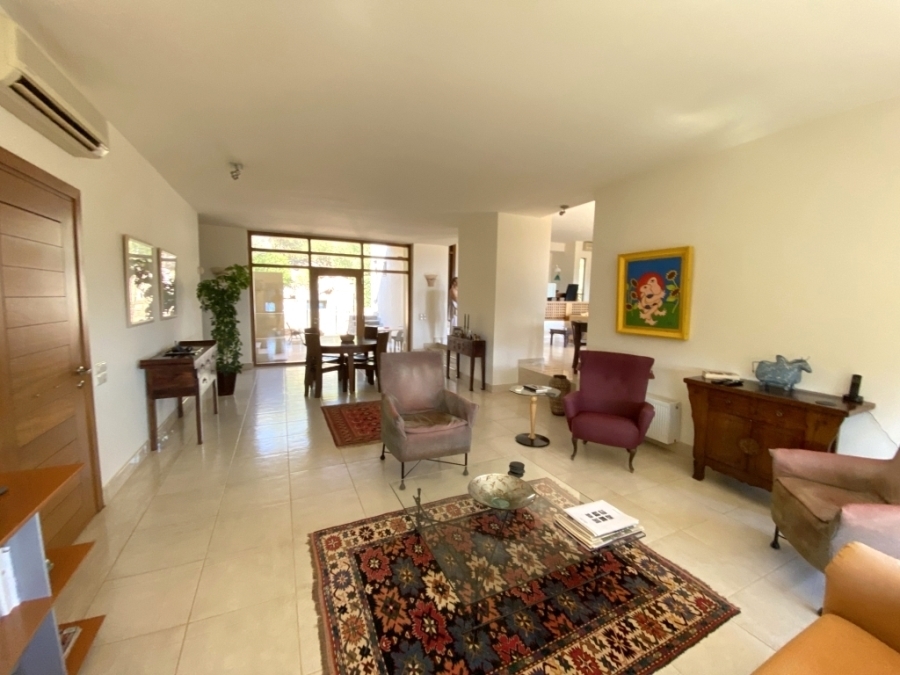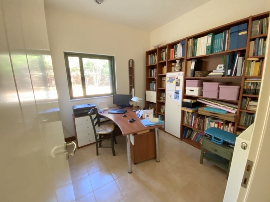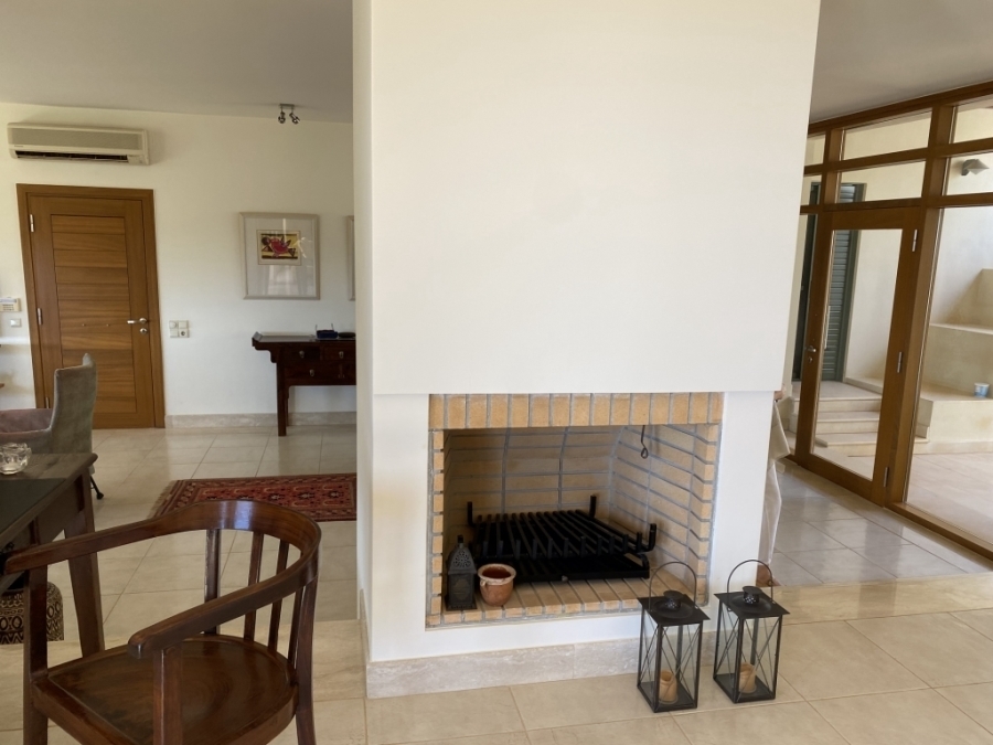 A beautiful villa of 250m2 in a 4.800m2 plot is available for sale in Agios Nikolaos. It is located only 500 meters far from sandy beach,1,5 km from the town of Aghios Nikolaos and 66km from the international airport. Entering the house we reach a two level large united space of sitting/dining room marked by the fireplace and the kitchen. Also, there are four bedrooms, two bathrooms and a WC. The basement of 115m2 includes the boiler room, garage and a storage room. Additional this villa has central heating, air conditioning, alarm system, close circuit cameras, boiler, solar and aluminium frames. In the exterior space there is a large veranda with pergola where someone can enjoy the panoramic view to the sea and mountains. Landscaped gardens with paths which are surrounding the house providing to the owner a sense of serenity. Undoubtedly this is a unique villa ideal as holiday or permanent residence.