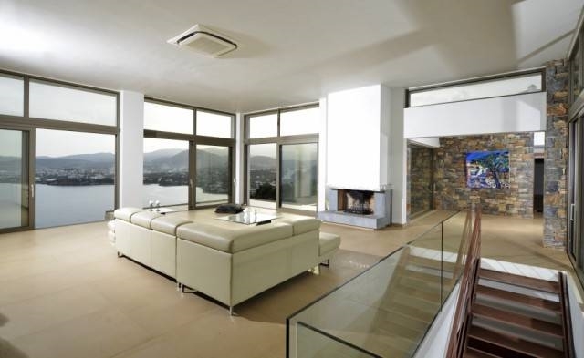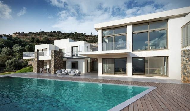 A luxury and modern two-floor detached villa of 765m2 in a plot of 4.007m2, is available for sale. It is located only 150 meters from the sea, 4km from Aghios Nikolaos and 70km from the international airport of Heraklion. The first floor is 287m2, the ground floor is 256m2 and the basement 222m2. It includes 4 bedrooms, an exercise room, family room, an office, 3 baths+1 WC, home theatre, 2 car indoor garage, a spacious underground cellar, toy room and many more amenities. Ground level can be separated to function as an independent guest house. The house is equipped with central heating on the ground floor and under floor heating on the first floor, while every room is provided with air conditioning. The entire house has large windows offering magnificent views to Merabello bay and the city of Aghios Nikolaos. Externally, there is the swimming pool of 76m2 and beautiful paths landscaped with grass and a garden house of 20m2 The house has all the amenities and combining with its wonderful location, it is an ideal choice for holiday or permanent residence.