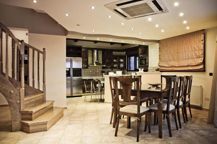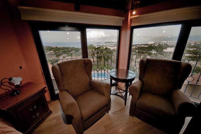 A truly elegant 235m2 luxury villa is for sale 3km from Aghios Nikolaos the picturesque capitol of Eastern Crete and only 2km from a Blue Flag beach. You cannot fail to be impressed by the grandeur of this villa and its magnificent view across the town to Mirabello Bay and the distant mountains. This three-storey villa built on a 3.700m2 walled plot is entered via an electric gate to a large parking area and a delightful garden (with lawns) encompassing terraces, BBQ area, pergola and a large swimming pool with a Jacuzzi. The ground floor comprises an open plan lounge and dining area with a feature fireplace (opening to a terrace, the pool and all with wonderful views); a comprehensively fully fitted and top range kitchen; a cloakroom with WC, a utility room and a store room. An impressive central staircase leads up to the Master fitted bedroom with en-suite shower room with Hydro-massage shower and terrace, two fitted double bedrooms and a luxurious bathroom with corner Jacuzzi bath. A staircase leads up to a further fitted bedroom with en-suite shower room on the top floor. The basement has a sauna room, two storage rooms, underground parking, a shower room and two large rooms suitable as further bedrooms. This villa has been built to a very high and luxurious standard to include central heating, air conditioning, double glazing, mosquito screens and video entry phone. This villa makes a very impressive home, but it has more to offer. Undoubtedly is a worthwhile investment choice in a great location.